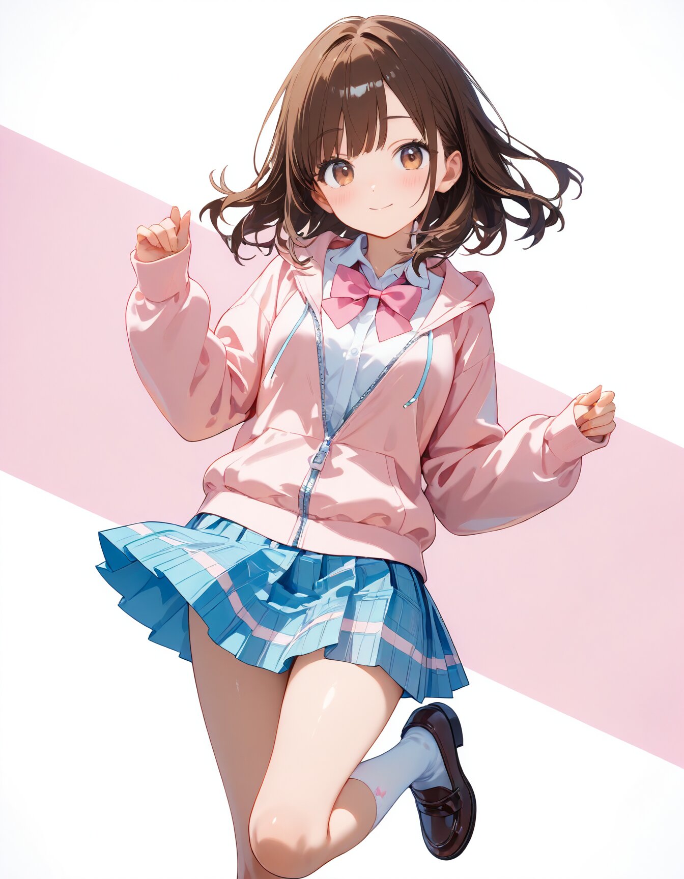 ピンクパーカーにと水色スカートの組み合わせ、やさしくて元気をもらえる推し色ですね。
