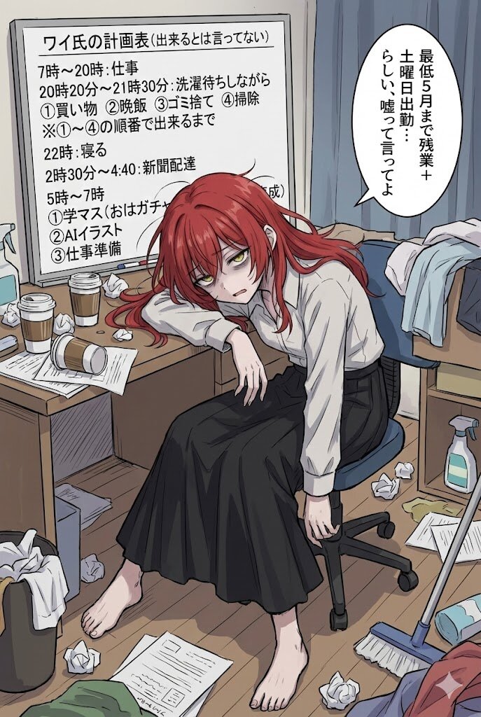AIイラストタイムが朝5時からなのが凄すぎます(笑えない…)