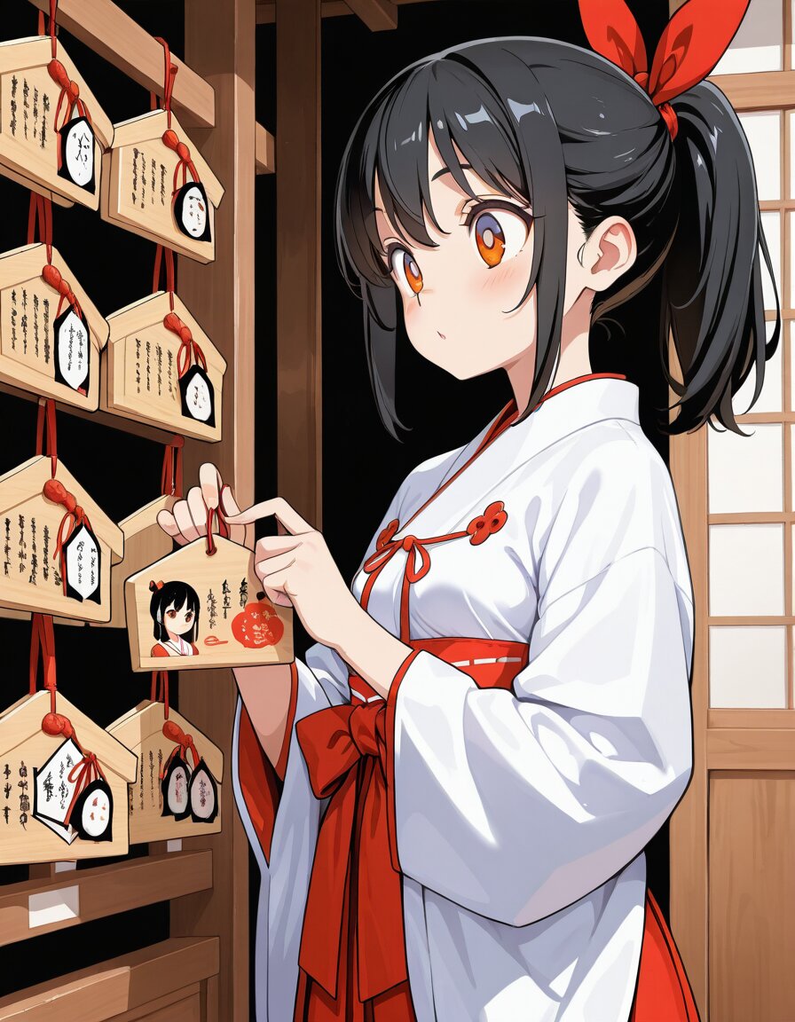 メタな発言ですが、四季子ちゃん設定的にはローティーン(中学生くらい)のイメージでイラスト作成しているので、本当は巫女服着て神社でアルバイトとかはできないのですが…