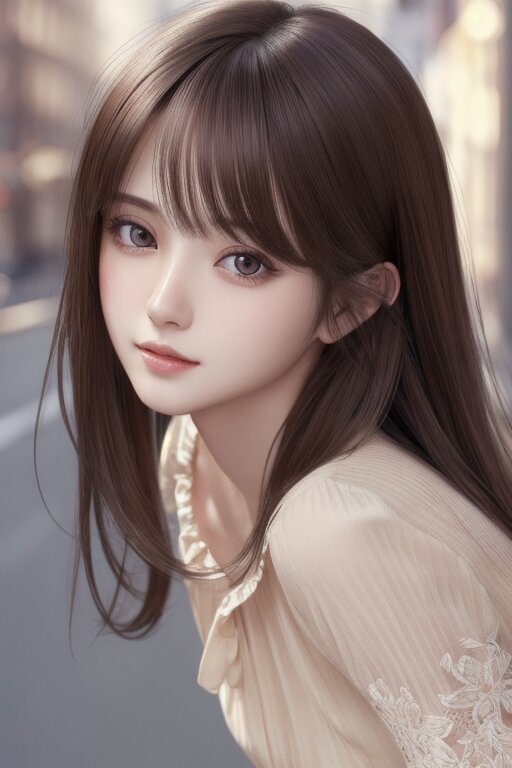 masterpiece, hyper detailed, 8K, hyper detailed illustration,Japanese woman, 23yo, cute, pretty, hyper detailed face, hyper detailed eye, beautiful eye,medium hair,thin, tall, bangs, blouse, short skirt, hyper detailed background,