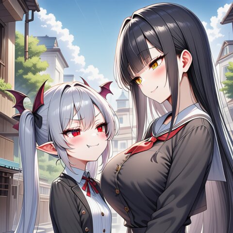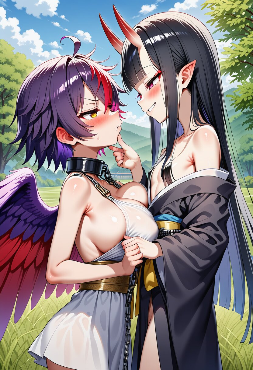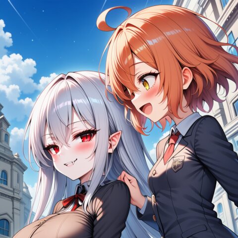 シーレちゃんと薊さんです。一応ロリ?巨乳と貧乳お姉さんと言う対比ですが、シーレちゃんの年齢的におねロリと言う感じでは無いですね。