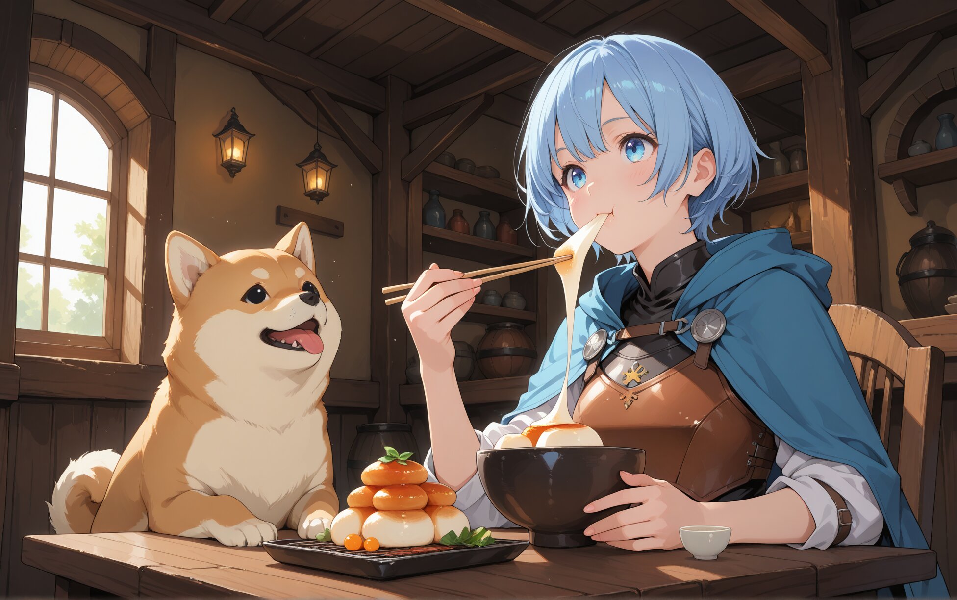 ちょうど昼時になったので、剣士ちゃんと柴ワンコは近くの食堂に入ることにした