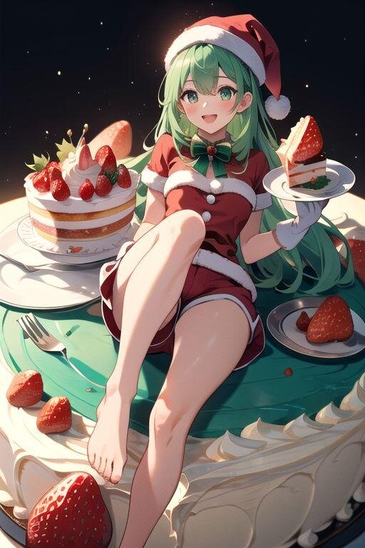 誕生日の始祖サンタ娘と苺のケーキ Amami 2026/1/6使用したAI その他 年齢制限 全年齢 いいね6 シェア #始祖サンタ娘 #火曜のAIフードコート #フルーツ #AIゆく年くる年 #お正月めし #緑髪 #いちごケーキ #サンタコス #裸足 イロミライさんの企画に参加今回のお題はぶえ〜さんによるお正月めしお正月のような和風とは言えないけど、1/6は始祖サンタ娘の誕生日かつ、キリスト教での公現祭と呼ばれるクリスマスの正式なお開きと言うことで苺のホールケーキ🎂始祖サンタ娘「わ〜い、こんなに大きなケーキありがとう💚」 プロンプト なし 1件のコメント ぶえ〜 2026/01/06 20:03 大きなケーキに埋もれてクリームまみれになっちゃいますね! 送信 Amami 2023年12月より活動開始 511投稿52フォロー60フォロワー Amamiです。(Xやpixivの「AI Amami」) Spellaiを用いて、ノエルちゃん、リツハちゃんといったサンタ娘や素足の少女をメインに投稿してます! Xやpixivより投稿頻度は少なめですが、彼女たちの世界を発信できるようにしたいです。 よろしくお願いします。 フォローする 他の作品 全てを見る 白猪神社へ訪れたリアラちゃん スノーボードに乗る素足緑髪サンタ娘 橇に乗ったリツハちゃん スノーモービルに乗車するノエルちゃん ノエルちゃんのおせち料理 旅館でお寿司を嗜むリツハちゃん 2026/01/05 森にて素足にジーンズの緑髪少女 水色髪のプロルちゃん 森にて緑髪のリツハちゃん 2026/01/04 森にて素足にジーンズの緑髪少女 喫茶店にて素足に冬コーデの黒髪少女 ベンチに座っている素足に冬コーデの黒髪少女 犬耳のノエルちゃん 辰にちなんでアルクスちゃん ウマ(午)耳のリツハちゃんと緑の鬣のウマ リツハちゃんと富士山と鷹のぬいぐるみ 鷹の羽を持った素足のチアリーダー ノエルちゃんと大小の富士山 もっと見る