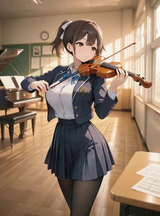 I animated the sixth image of Ayumu playing violin: SeaArtAI (https://iromirai.jp/posts/611327723b0d?i=0).