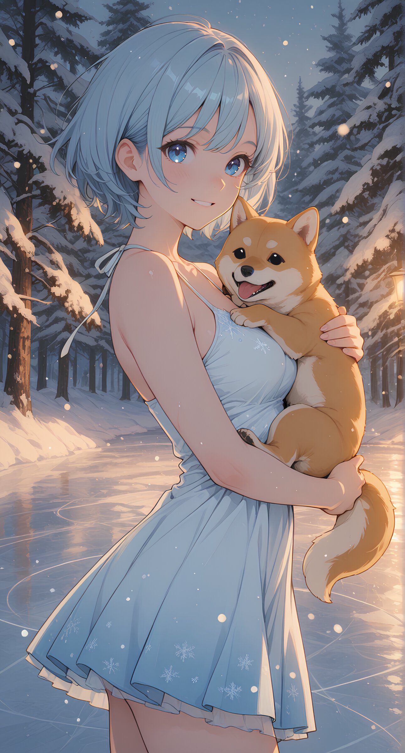 夜のスケートリンクにて、ここ2回登場しなかった柴ワンコと2ショット