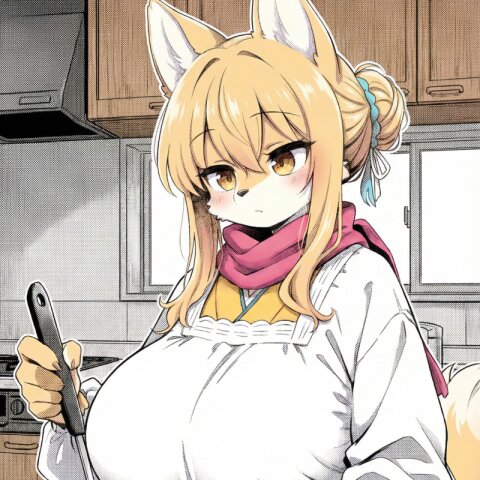 イラストのキャラクターをGペンでペン入れする。2D。カラー。背景に濃いトーンを貼っている。強めの陰影とコントラスト。線は細く薄くする。バストとヒップがとても豊満。キャラクターの特徴をそのままに、構図とポーズを変更する。キャラクターを斜め後ろから見る。背景は教室。椅子に座りながら鞄を机に置く。キャラクターの髪色は純白、目は銀色、羊角は黒。キャラクターが着ている白いシャツを、カウベルが付いた黒い毛皮の首輪、黒いマント、ネックラインにフリルが付いた白いキャミソールに変更。黒タイツの質感向上。陰影はペン書き。完全に新しいイラスト。グラデーションを追加。 ▶︎衣服のキャミソールを白いリブ編みセーターに変更。キャラクターのバストサイズを、アニメキャラクターの様に異常に大きくする。背景のトーンを削除。キャラクターは「・・・・・・」と黙っている。写っていないところから「お ベーネちゃん」「相変わらず でっかいなあ」「眠らされたら カンベンだけど」と思考吹き出しで思われている。