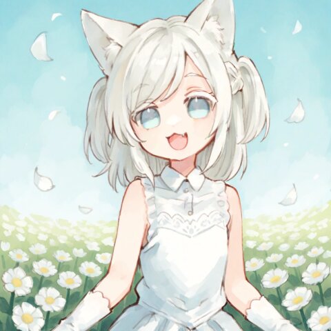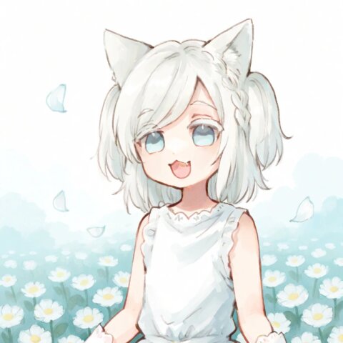 <lora:inmnstyleilxl:0.9>, ultra-detailed, best quality, masterpiece, very aesthetic, watercolor painting, general, chibi, solo, 1girl, high angle, wariza, white fluffy kigurumi, hood with sheep horns, sheep tail, hoof, (bright white hair), short hair, blunt bangs, white thick eyebrow, white colored eyelashes, (hair over one eye), mint green eyes, smile, open mouth