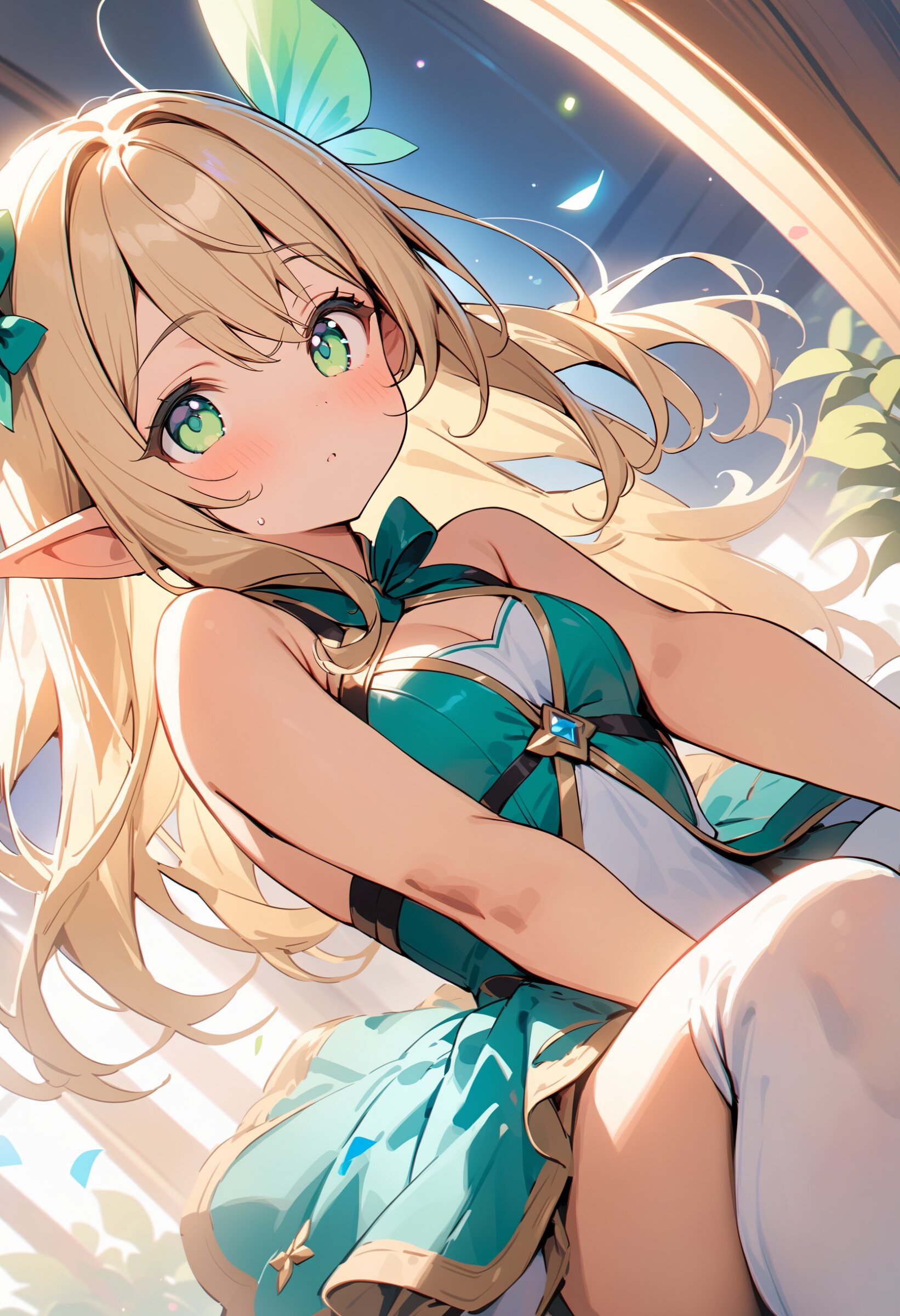 ((masterpiece)), ((best quality)), ((kawaii)), cute, (lovely), ((extremely detailed)), (beautiful), dynamic angle, a cute girl, 1girl, solo, ((elf)),beautiful blond hair, beautiful green eyes, ((beautiful eyes)), long hair, fantasy clothes,
