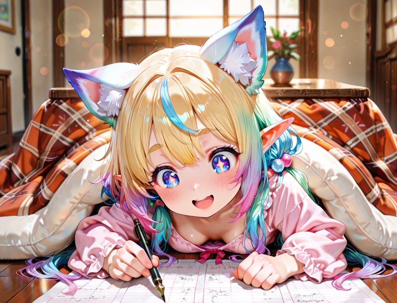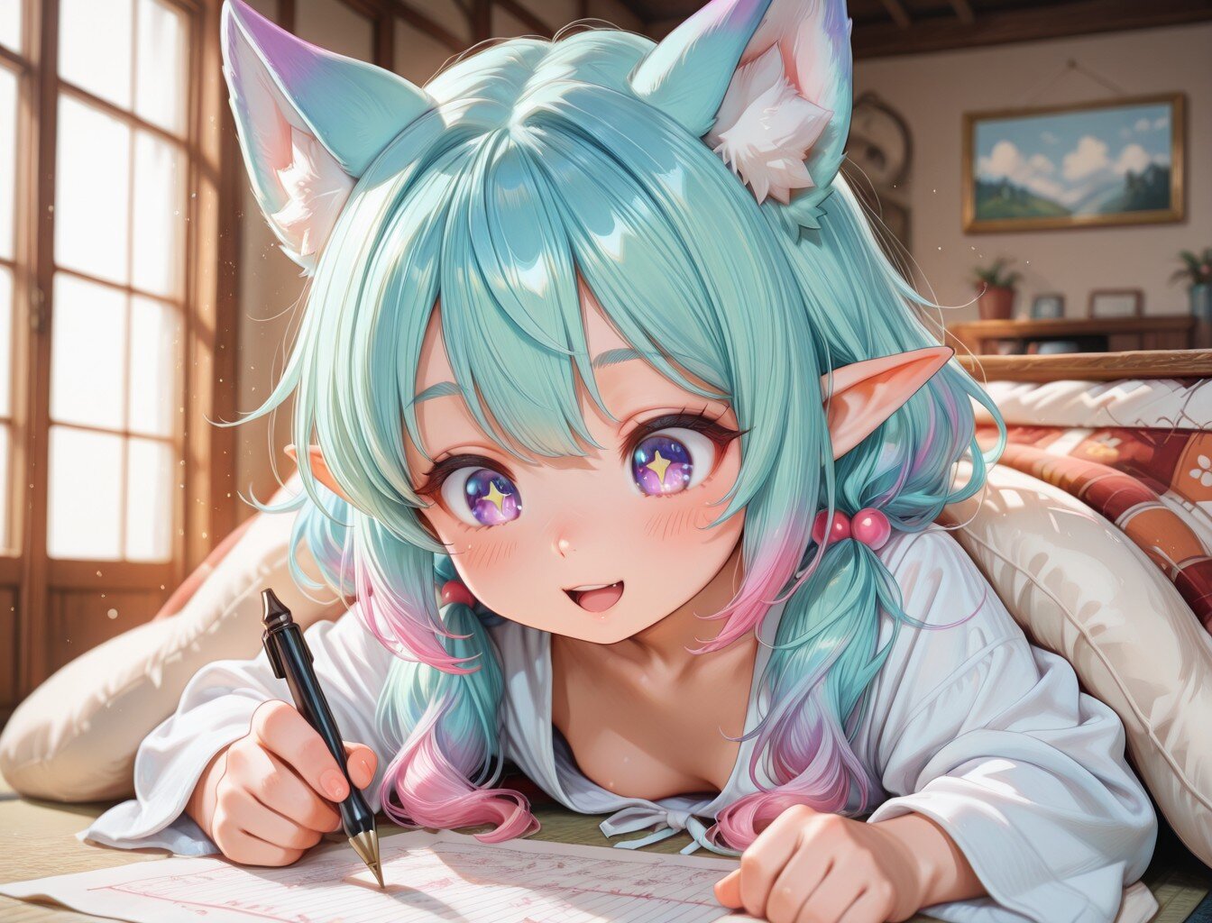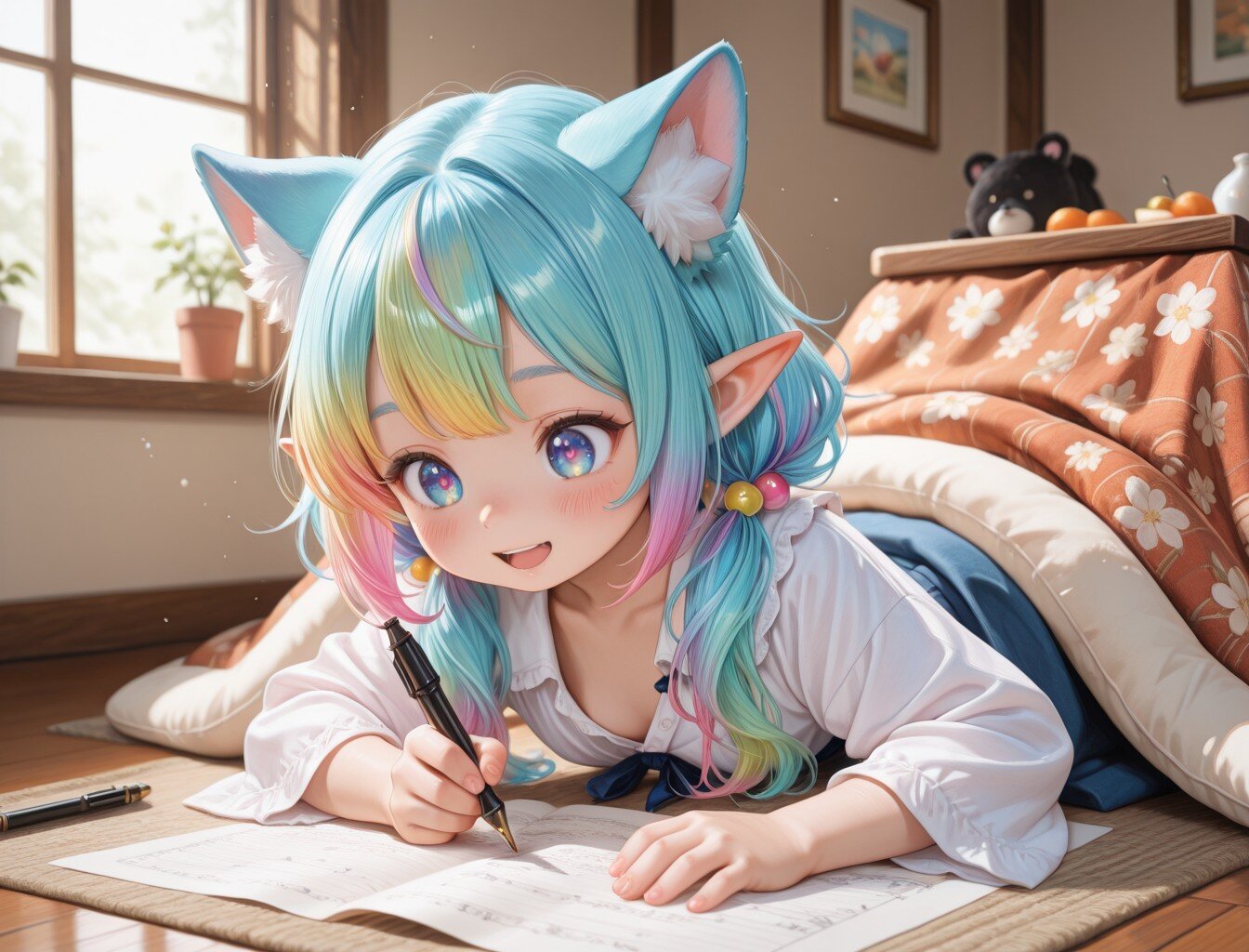 6枚)コタツで勉強① あいのすけ 2026/1/15使用したAI Stable Diffusion XL 年齢制限 R-15 いいね3 シェア #女の子 #コタツ #寝そべり #エルフ #ケモ耳 #ケモ耳エルフ プロンプト なし コメント 送信 あいのすけ 2025年9月より活動開始 132投稿19フォロー20フォロワー ケモ耳とエルフが好きな一般人です。 気の向くままに作品を作り投稿してみようと思います。 フォローする 他の作品 全てを見る 12枚)クレープとケモ耳エルフさん① 9枚)姉妹で肩車 9枚)おみくじと肩車 12枚)オーロラとユニコーン娘② 12枚)オーロラとユニコーン娘① 5枚)夜空とユニコーン娘 8枚)焚火とケモ耳エルフさん 12枚)食べ歩き 5枚)御朱印と巫女さん 5枚)交換日記 8枚)キツネと添い寝 8枚)ギャルと羽子板 3枚)買い物 3枚)授業で書初め 8枚)雪玉とケモ耳エルフさん 12枚)初詣と初日の出 3枚)蛇年から午年へ 9枚)ヒマワリとケモ耳エルフちゃん もっと見る