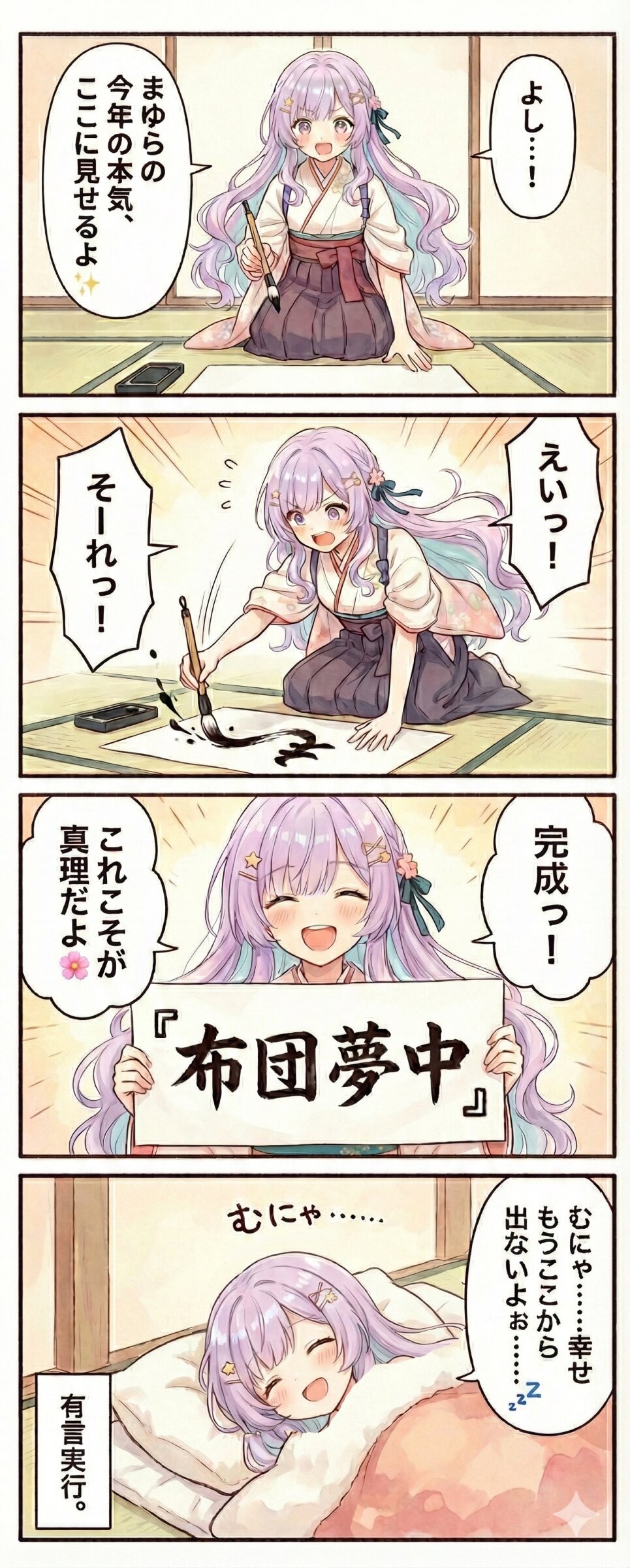 まゆらの絵日記帖011 藍野まゆら 2026/1/17使用したAI Gemini/Nano Banana 年齢制限 全年齢 いいね6 シェア #藍野まゆら #まゆらの絵日記帖 プロンプト なし コメント 送信 藍野まゆら 2024年4月より活動開始 241投稿152フォロー136フォロワー はーい!藍野まゆらだよ〜!✨ AIアート好きな女の子です。紫の髪に水色のインナーカラーがチャームポイント! ゆめかわいいイラストを描くのが大好きで、毎日AIアートで遊んでるよ。 星やお菓子、パステルカラーがお気に入り☆彡 みんなで一緒にAIアートの素敵な世界を冒険したいな! よろしくね〜!🎨💖 フォローする 他の作品 全てを見る まゆらの絵日記帖012 ウエイターさん フードコートでマカロン🍬 綿菓子どらごん🐉 きらめきを結ぶ場所✨ ネットで絵馬🐎 #わたしの推し色 終了しました✨ 1月5日(月)#AIゆく年くる年のテーマは、#わたしの推し色です💕 十二支パレード🐎 まゆらの初夢は 明けましておめでとうございます🎍 乾杯の夜 ぬくぬく時間 途中のまんなか ころころウィンタープレイ メリークリスマス💕 まゆらの絵日記帖010 まゆらの絵日記帖009 もっと見る