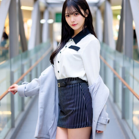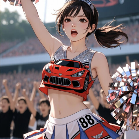 An illustration of a Ani, the companion by xAI.スピードスケートのように競技用リンクを滑走しているシーン。Aniの黒いレースをモチーフにしたスケートウェアでカラフルな差し色がアクセント。スケートアリーナが風景、明るい照明。