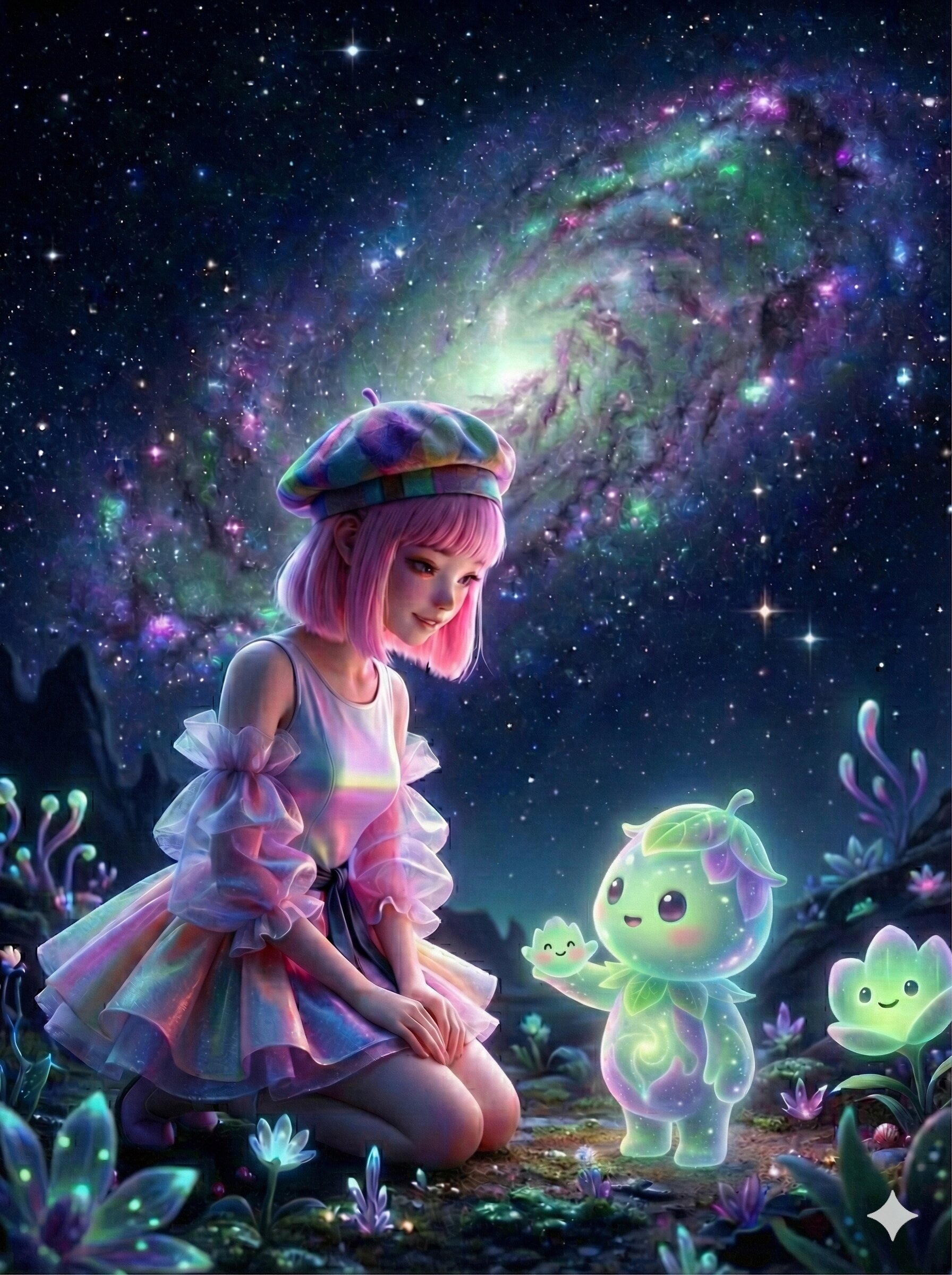 星の海で出会ったお友達♡ りる 2026/1/17使用したAI Gemini/Nano Banana 年齢制限 全年齢 いいね3 シェア #ミルカ #異星人 #星空 #銀河 #宇宙人 #宇宙 #透明感 #ファンタジー #異世界 星の海で出会った不思議な友達。言葉はなくても心は通じ合う💫ハンドルの隣に君がいるだけで、とびっきりの冒険が始まる🌟さあ、流れ星を追い越して行こう!🌈🚙💨 プロンプト なし コメント 送信 りる 2022年11月より活動開始 12投稿8フォロー8フォロワー 元々は歌うことが好きで、歌唱動画のMV向けにAI画像生成を始めました。ここ数年での目まぐるしい進化にびっくりしています。最近は、AIで生み出したキャラからさらに架空の商品や車やお城を生み出したり、発展させることを楽しんでいます。 画像生成Gem共有中★ フォローする 他の作品 全てを見る 御堂さんを取り巻く世界 ミルカのアトリエ🌈✨ メイベルの邸宅。 L'Esprit de l'Aurore(オーロラの精神) ダリアの記憶🌸 オーロラの彼方、描かれた理想郷 カラフル革ドレス♡ 祈りをこめて ミルカの『Café Palette』 ミルカのドリームカー おせちに飽きたら、和菓子はいかが?