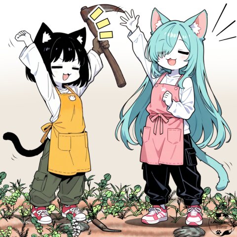 黒猫ちゃんと青猫ちゃん(狐餅ブースト) 「雑巾がけ」