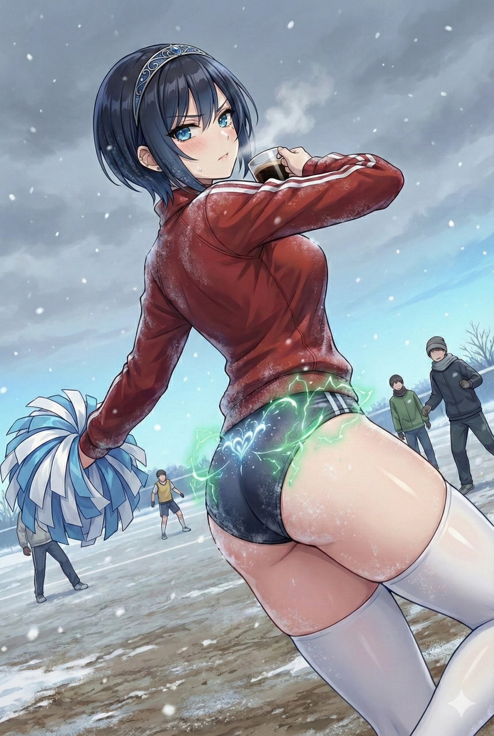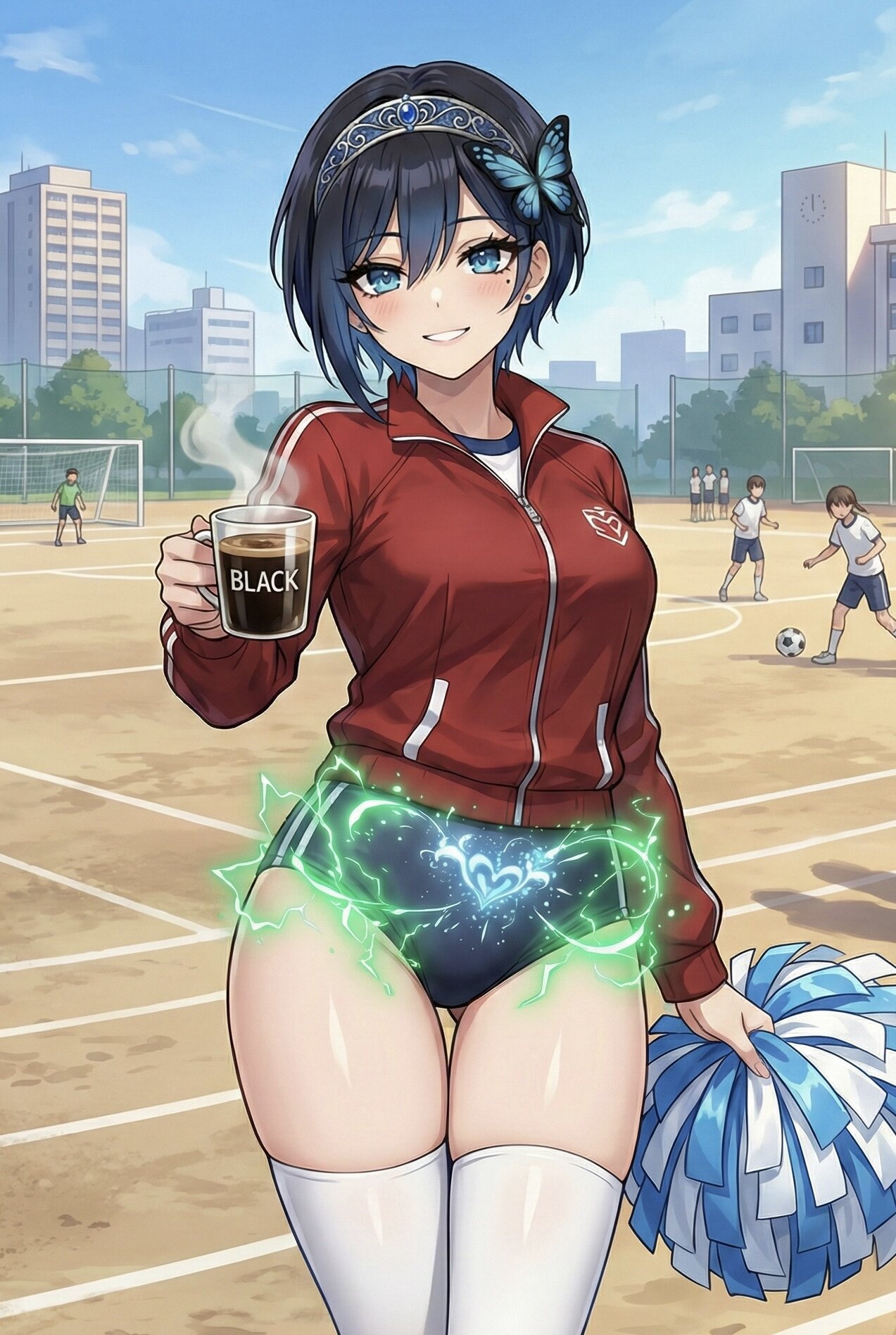 ブルーブルマのチアガールマネージャはあなたにコーヒーの差し入れに.