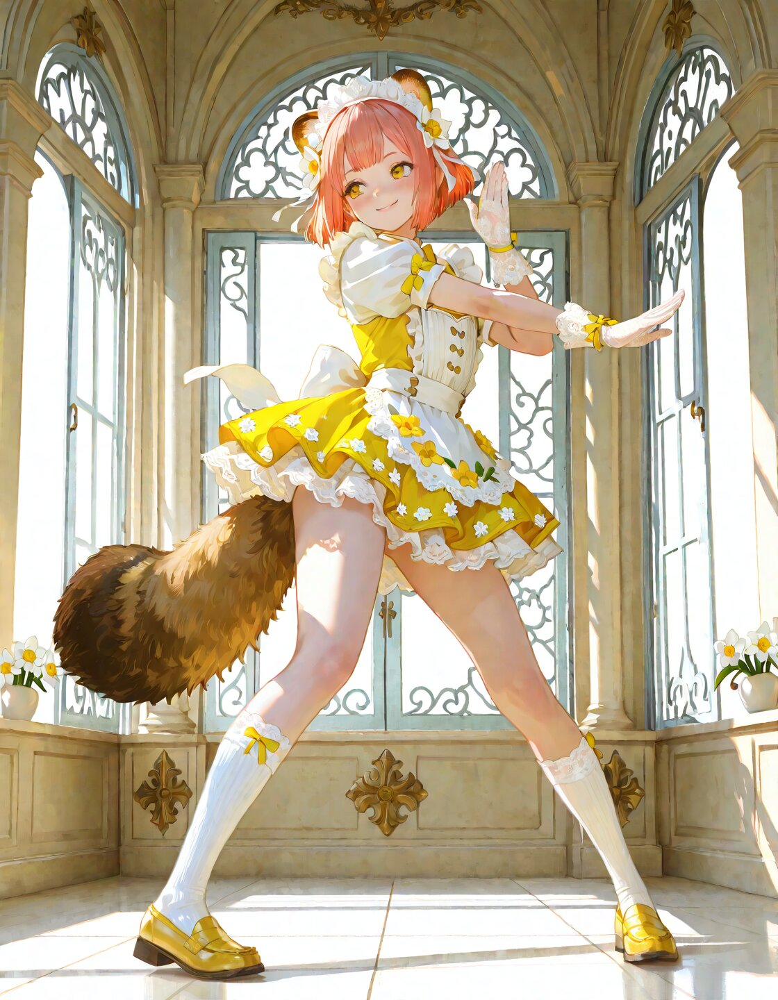 水仙の花がモチーフの、黄色が鮮やかなメイド衣装です。