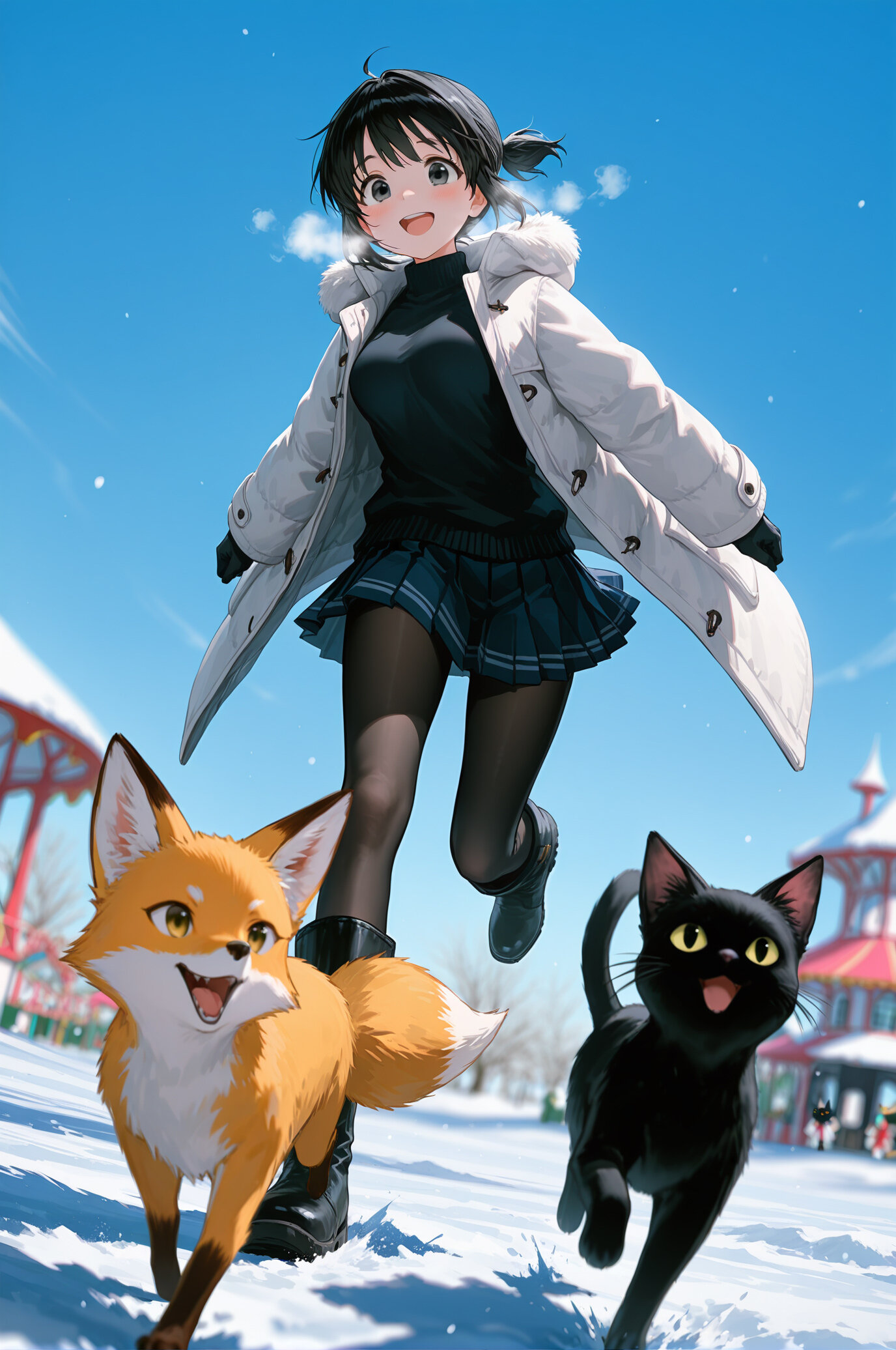今日は黒猫さんとごんちゃんを連れて冬のテーマパークに遊びに来ました!🥰🙌