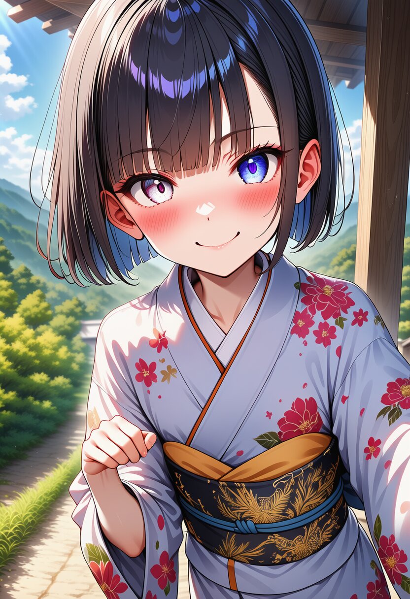 ai-generated, year 2024, anime style, 1girl, solo, midday, outdoor, in oriental countryside, dynamic angle, masterpiece, best quality, ultra detailed, perfect fingers, high resolution, absurdres, perfect anotomy, detailed background, unity 8k wallpaper, location, very aesthetic, masterpiece, no text