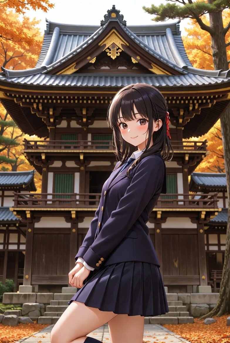 旅行というテーマに際して、いくつか旅行の類型を考えた。修学旅行中のスナップ風イラストを制作した。寺院を背景に大人びた表情。