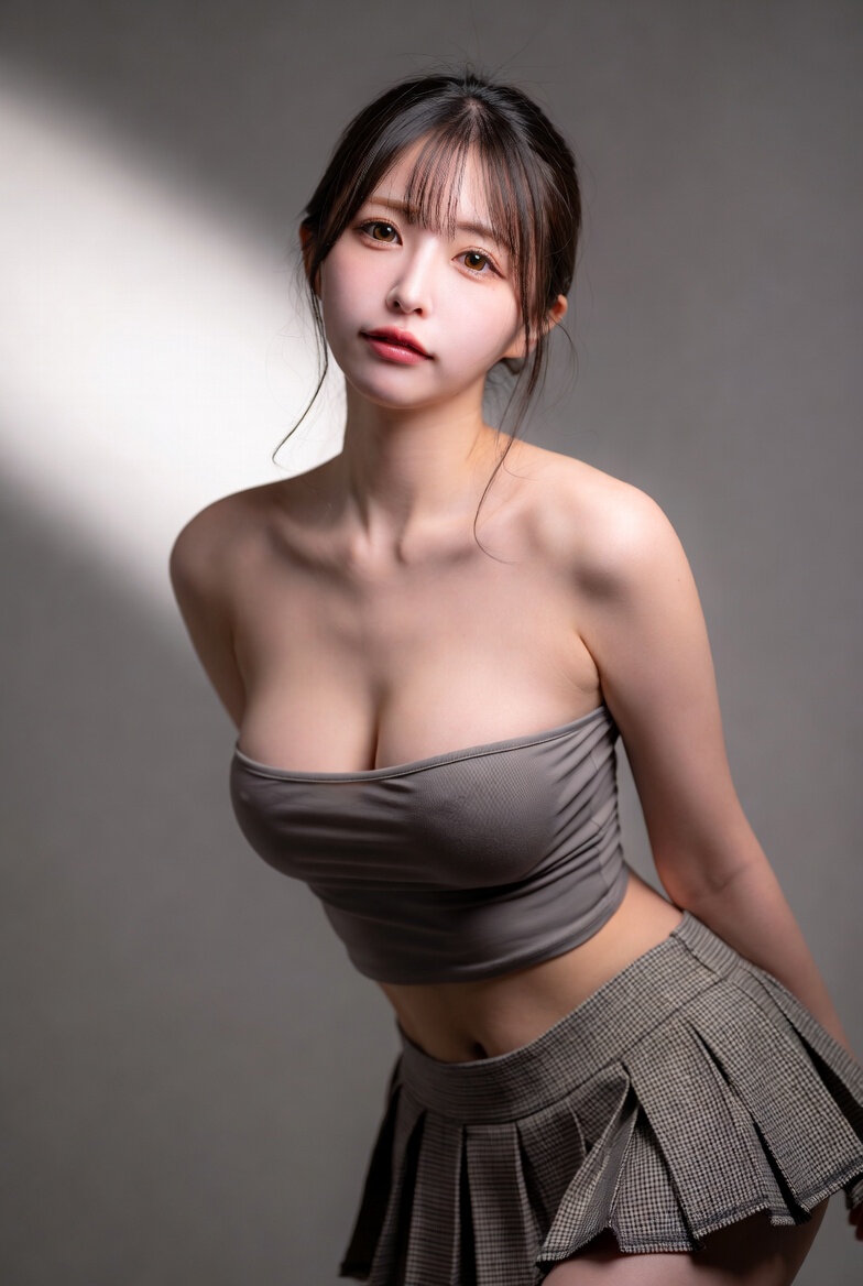 masterpiece, RAW photo, hyper detailed, 16K, extremely detailed CG, Japanese woman, 23yo, ((solo)), BREAK cute, pretty, hyper detailed eye, hyper detailed face, medium hair, bangs, extremely detailed, thin, tall, perfect anatomy, good proportion, extremely detailed body, perfect proportion, BREAK crop top,bare shoulders blouse,check short flare skirt, extremely detailed blouse and skirt, hyper detailed background,
