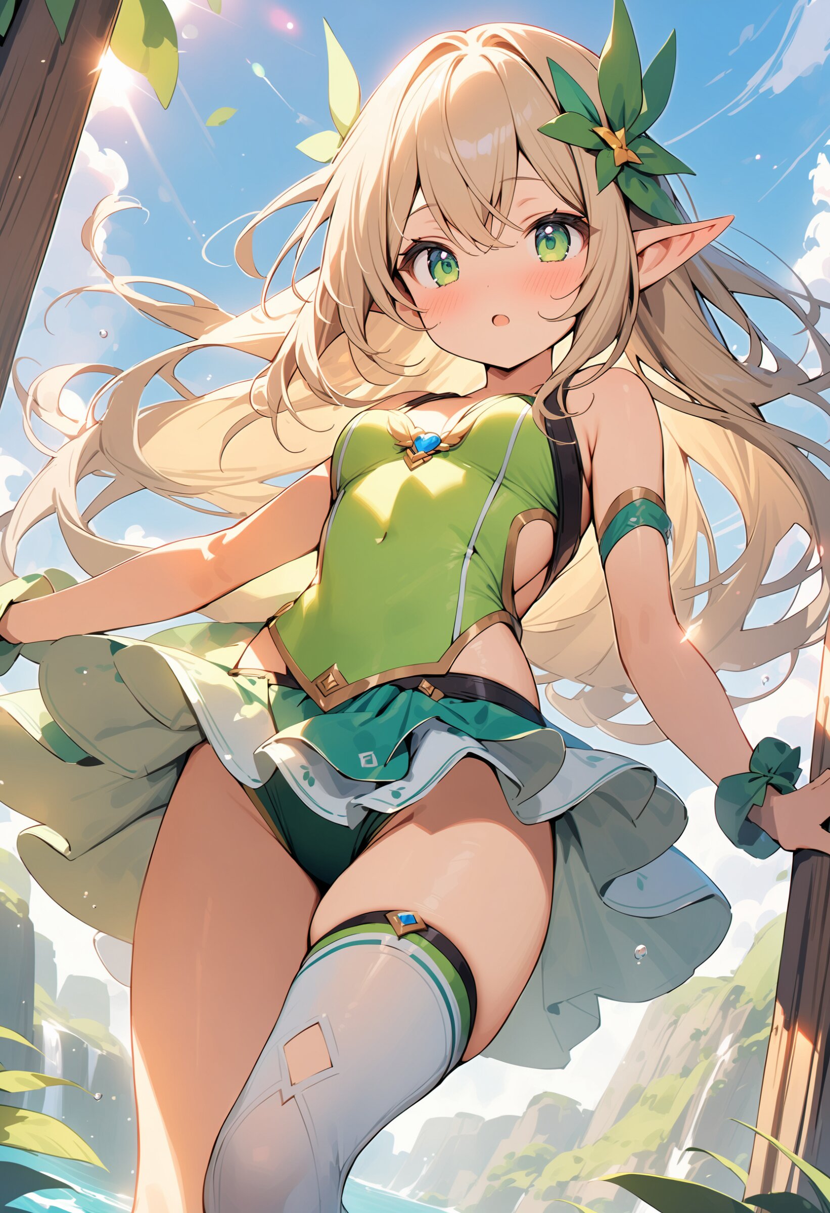 ((masterpiece)), ((best quality)), ((kawaii)), cute, (lovely), ((extremely detailed)), (beautiful), dynamic angle, a cute girl, 1girl, solo, ((elf)),beautiful blond hair, beautiful green eyes, ((beautiful eyes)), long hair, fantasy clothes,