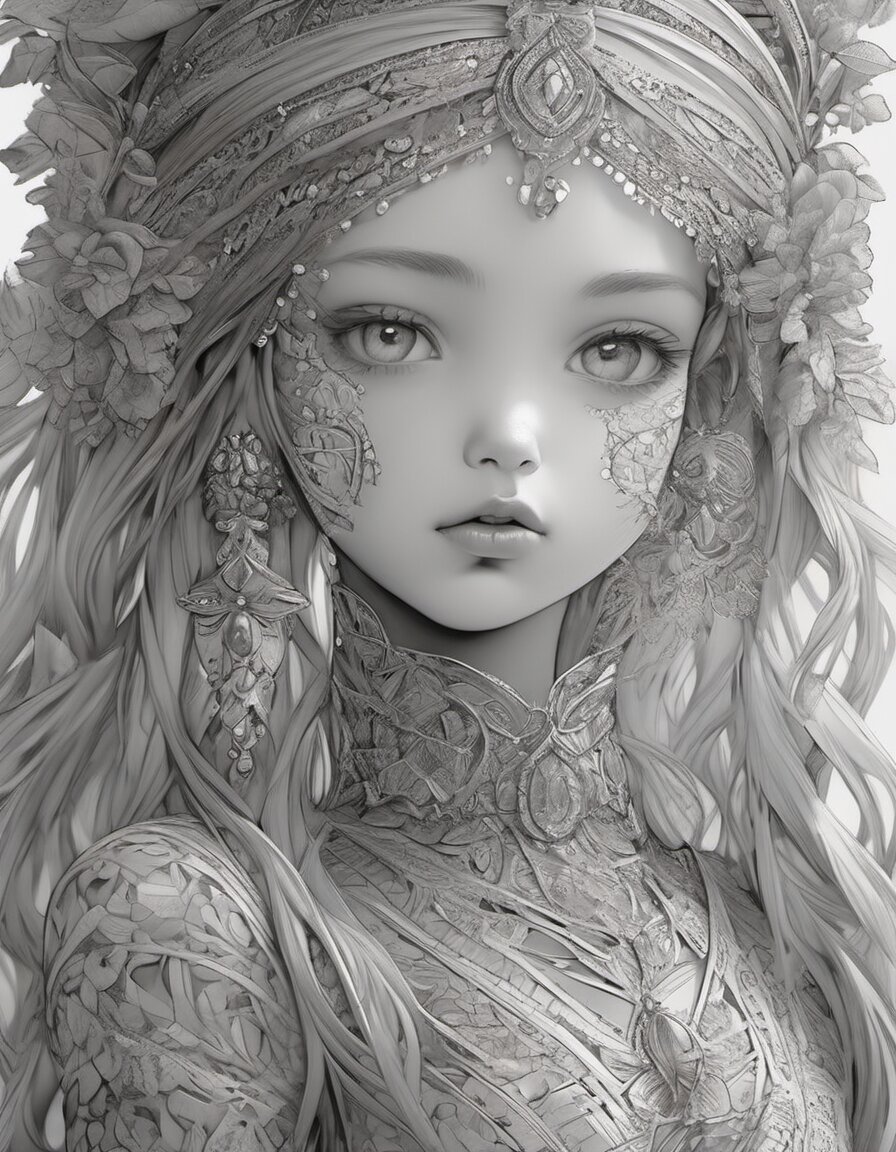 ディティールに関するプロンプトをかなり重ねて強度上げたらどこまで細かな模様を出してくれるか試験的に試したもの