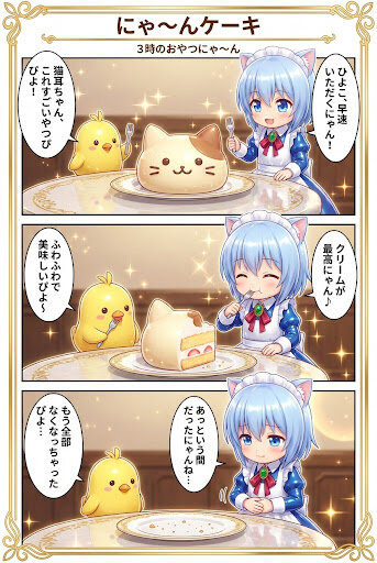 にゃ〜んケーキ 動くイラスト 2026/2/7使用したAI Gemini/Nano Banana 年齢制限 全年齢 いいね5 シェア #猫耳 #メイド服 #ひよこ #3時のおやつにゃ〜ん #漫画 #日常 プロンプト なし コメント 送信 動くイラスト 2024年6月より活動開始 219投稿11フォロー22フォロワー 2024年 06月28日(金)初投稿 10月13日(日)動くイラスト投稿 モーションブラシを使用してのアニメショーン フォローする 他の作品 全てを見る バイオハザードぽい動画 バイオハザードぽいゲーム ひよこ動画 猫がカレーライスを食べる ニワトリの日らしいので・・・ バイオハザードぽい動画5 バイオハザードぽい動画4 バイオハザードぽい動画3 バイオハザードぽい動画2 バイオハザードぽい動画 ガンダムDXの予定だった物 バイオハザードぽい動画 結城友奈は勇者である プリパラ レオナ・ウェスト フェイト セイバー 鉄血のオルフェンズ ガンダムバエル ガンダムエアリアル ニューガンダム もっと見る