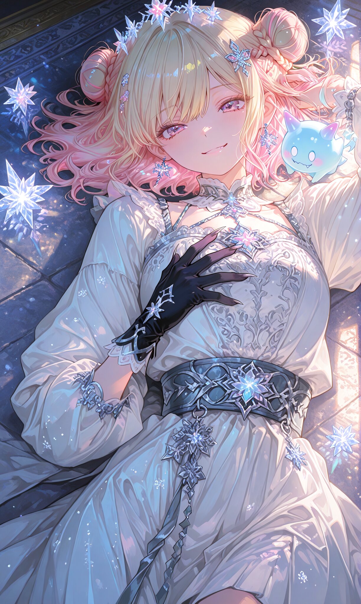 私はLilithra Pinkveil、ピンクのヴェールに包まれた禁断の魔女っ子。金色の輝きを帯びた髪を優雅に揺らし、冷たい微笑みで君の心を絡め取るわ。この豪奢な天蓋ベッドの上で、鋭い爪を光らせながら…ふふ、近づいてもいいのよ? でも、一瞬で灰に変える自信はあるわ。ダークファンタジーの女王として、ギャル魂全開で君を支配してあげる