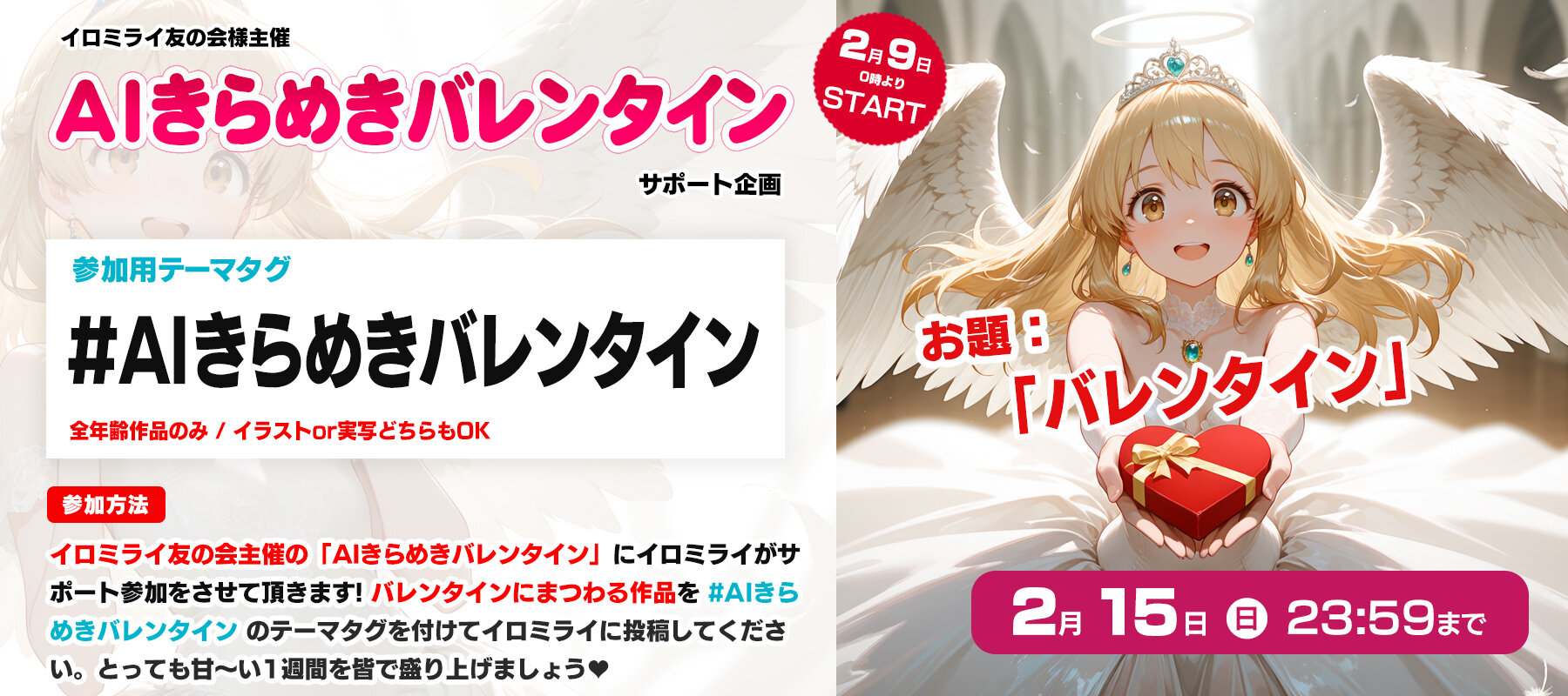2月9日(月)~2月15日(日)にかけてX上で開催される「イロミライ友の会」様主催による「AIきらめきバレンタイン」企画にイロミライが企画サポーターを担当させて頂きます!