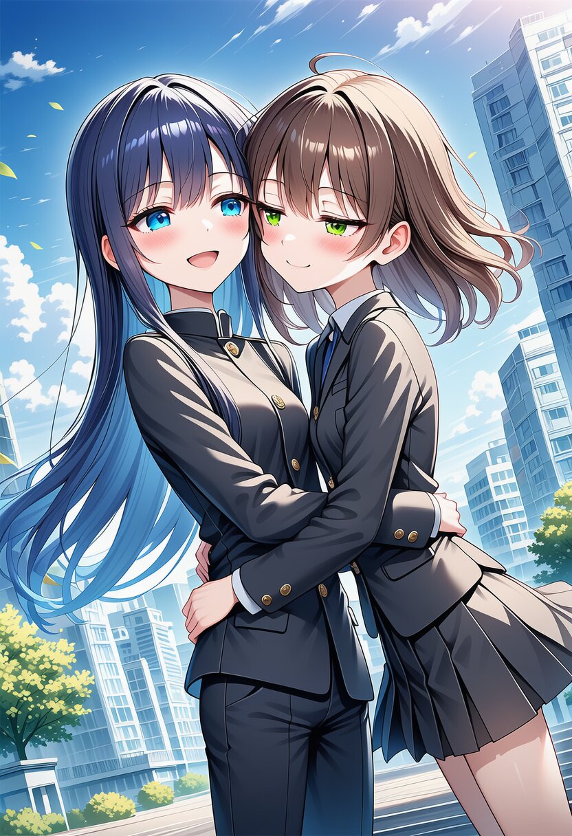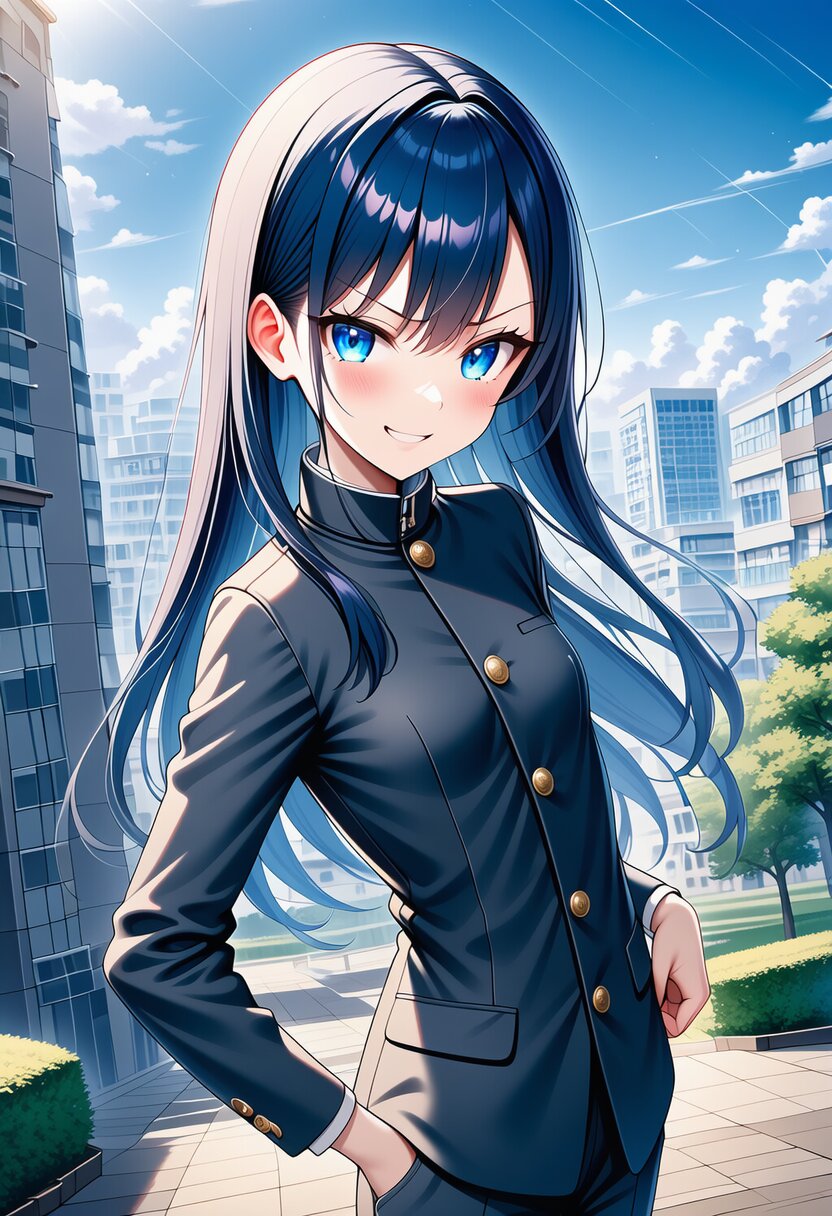 ai-generated, year 2024, anime style, 1girl, solo, midday, outdoor, in modern town, dynamic angle, masterpiece, best quality, ultra detailed, perfect fingers, high resolution, absurdres, perfect anotomy, detailed background, unity 8k wallpaper, location, very aesthetic, masterpiece, no text