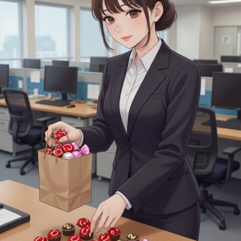 金曜日をこなせば、 2月14日はセントバレンタインデー。そんな金曜日を応援するチアガール。チョコのプレゼントのモチーフがプリントされたユニを着ている。