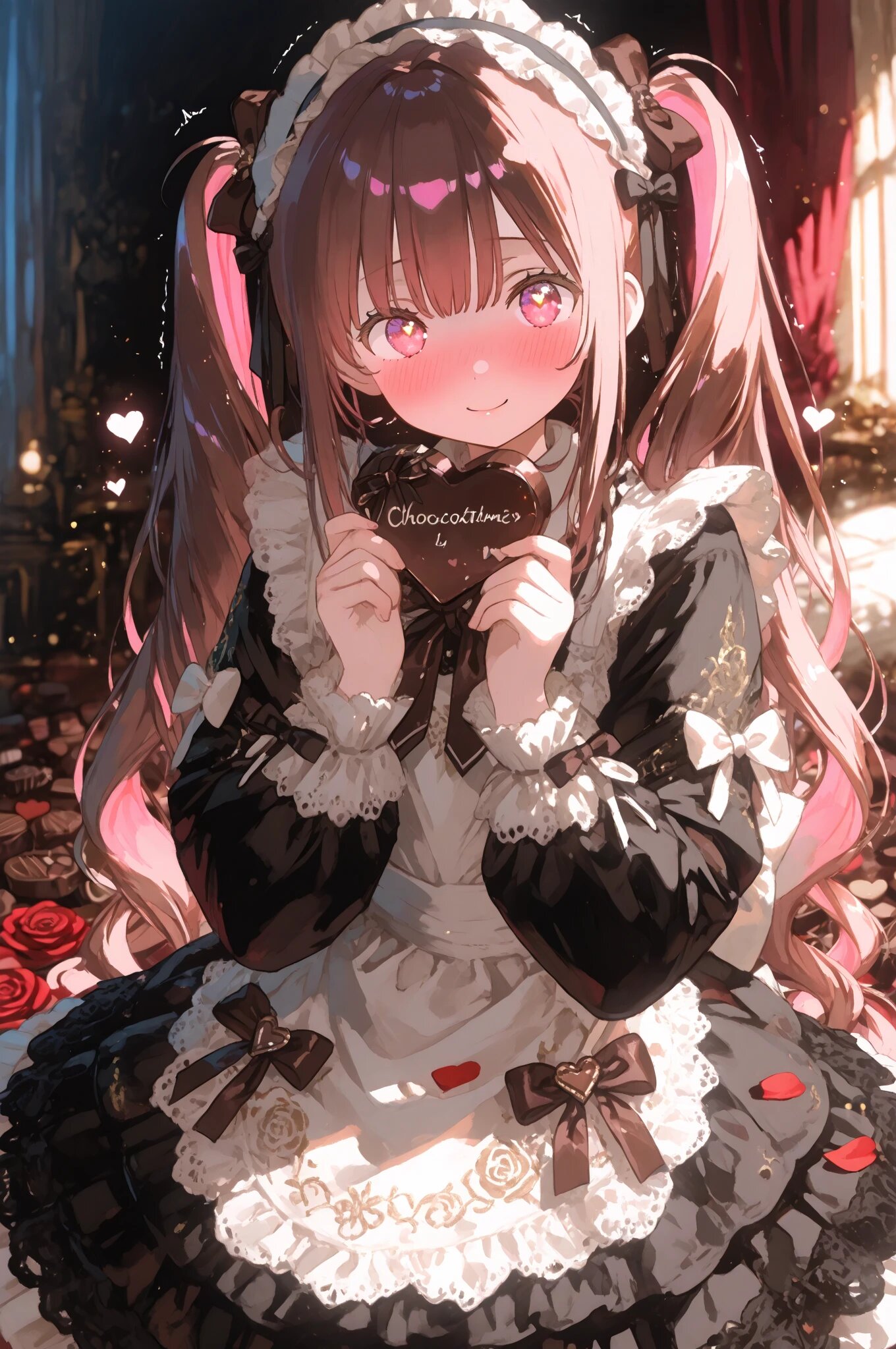 背景に散りばめられたバラやハートのチョコも、バレンタインの甘い雰囲気を引き立てていて素敵です。