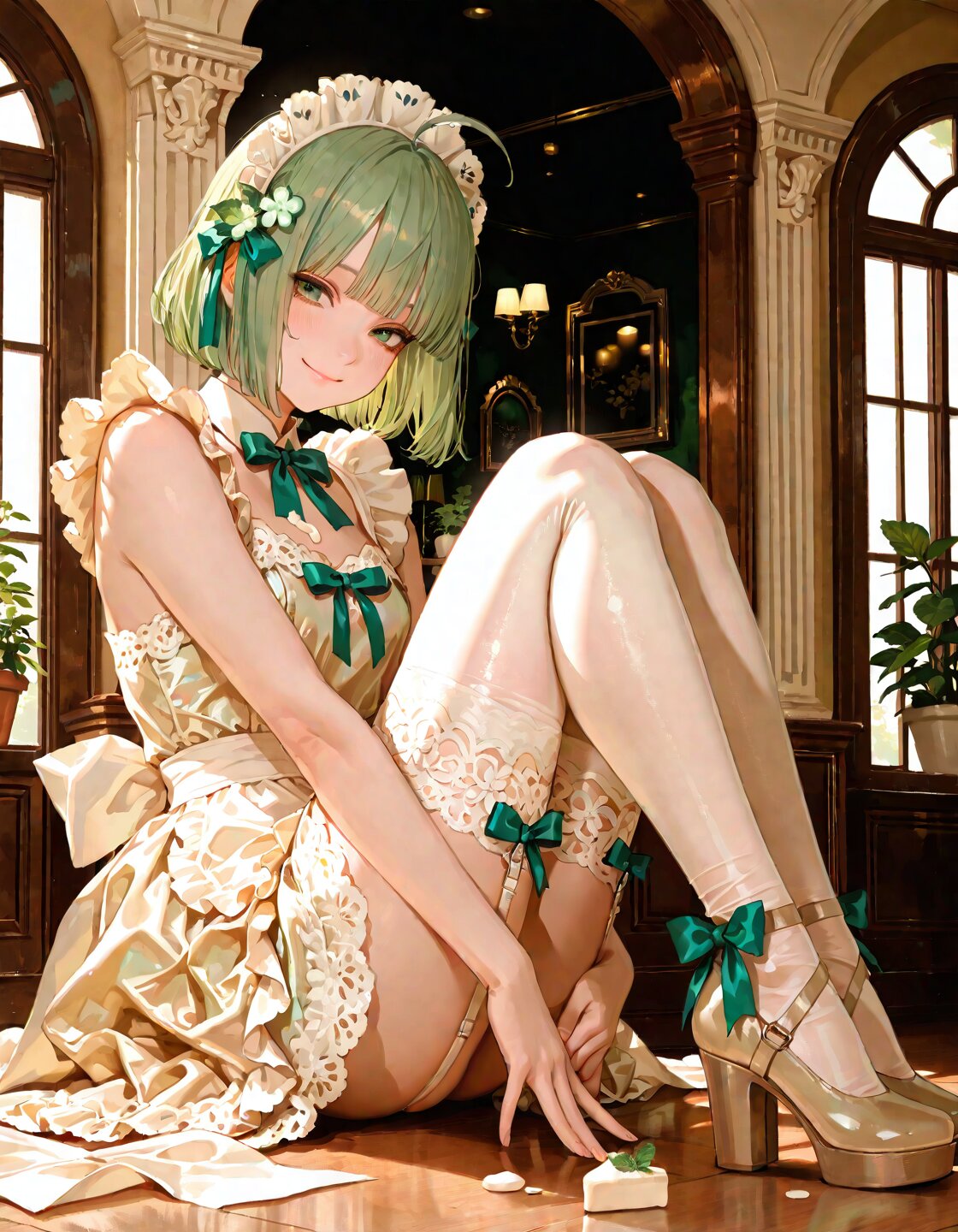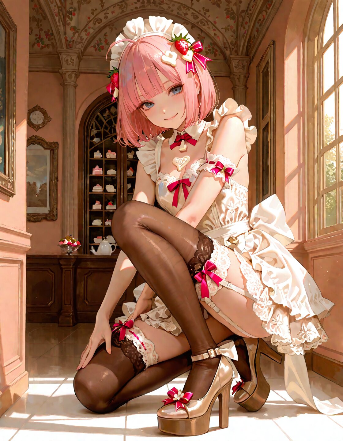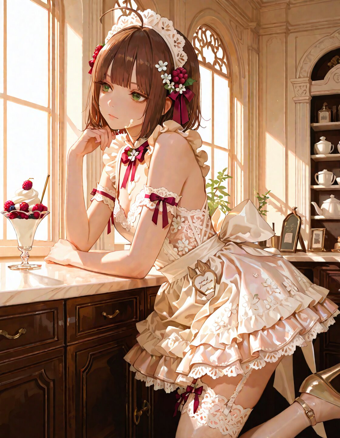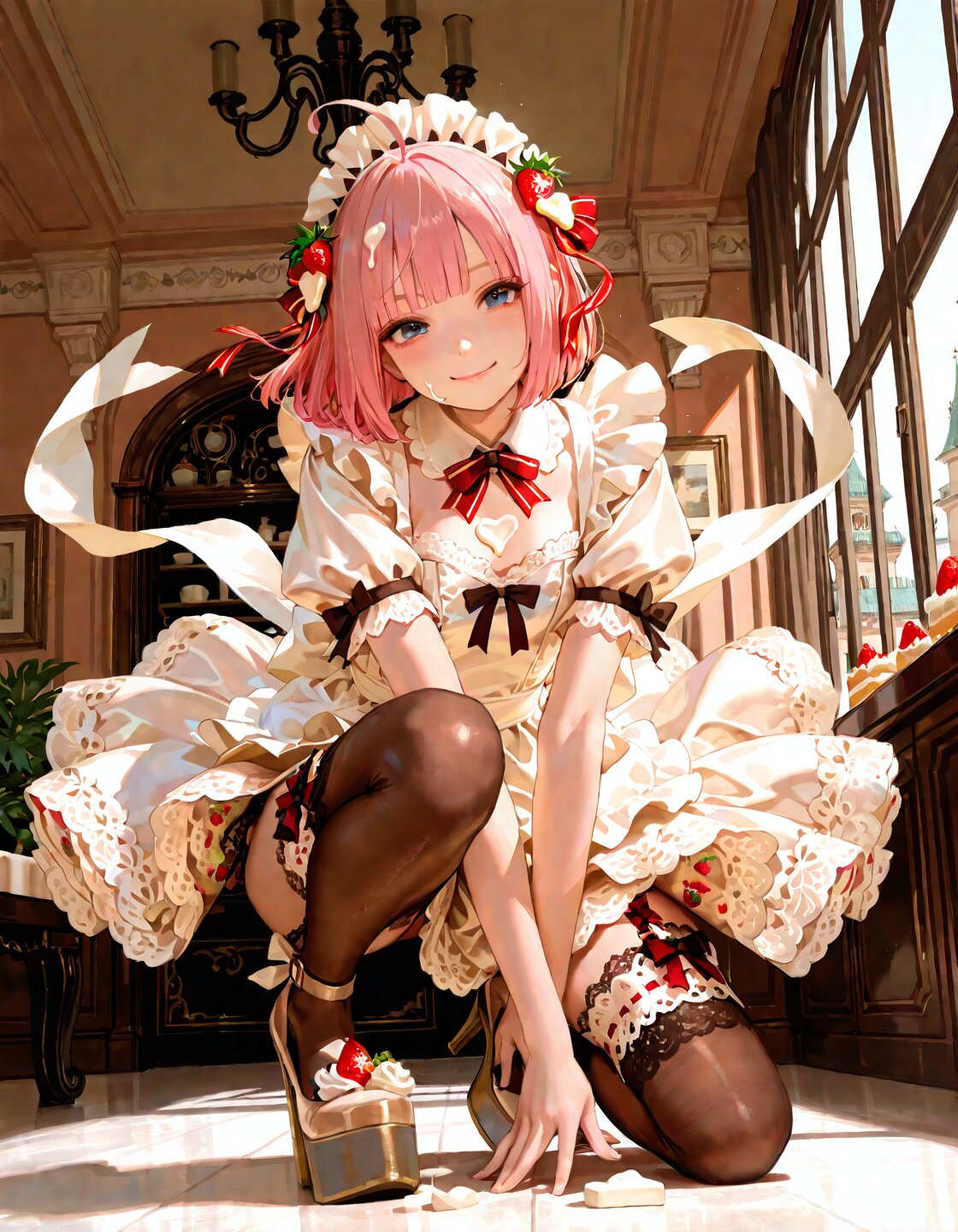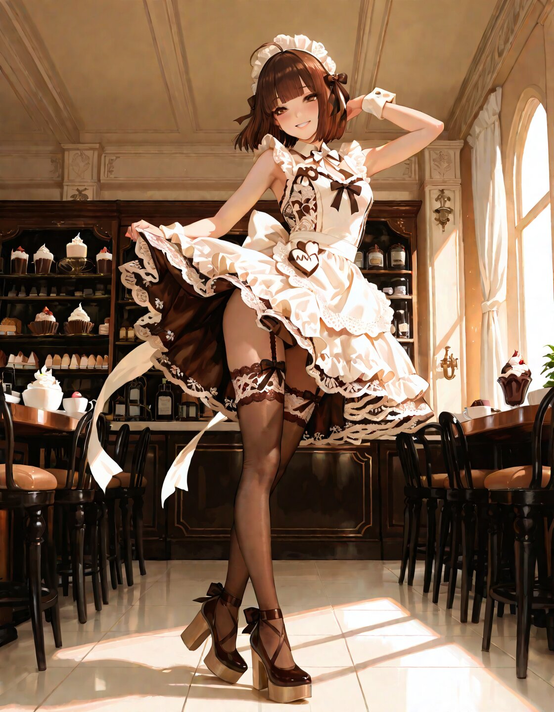 ホワイトチョコ色のメイド服、フリルたっぷりで本当にお洒落っ!🥺💖