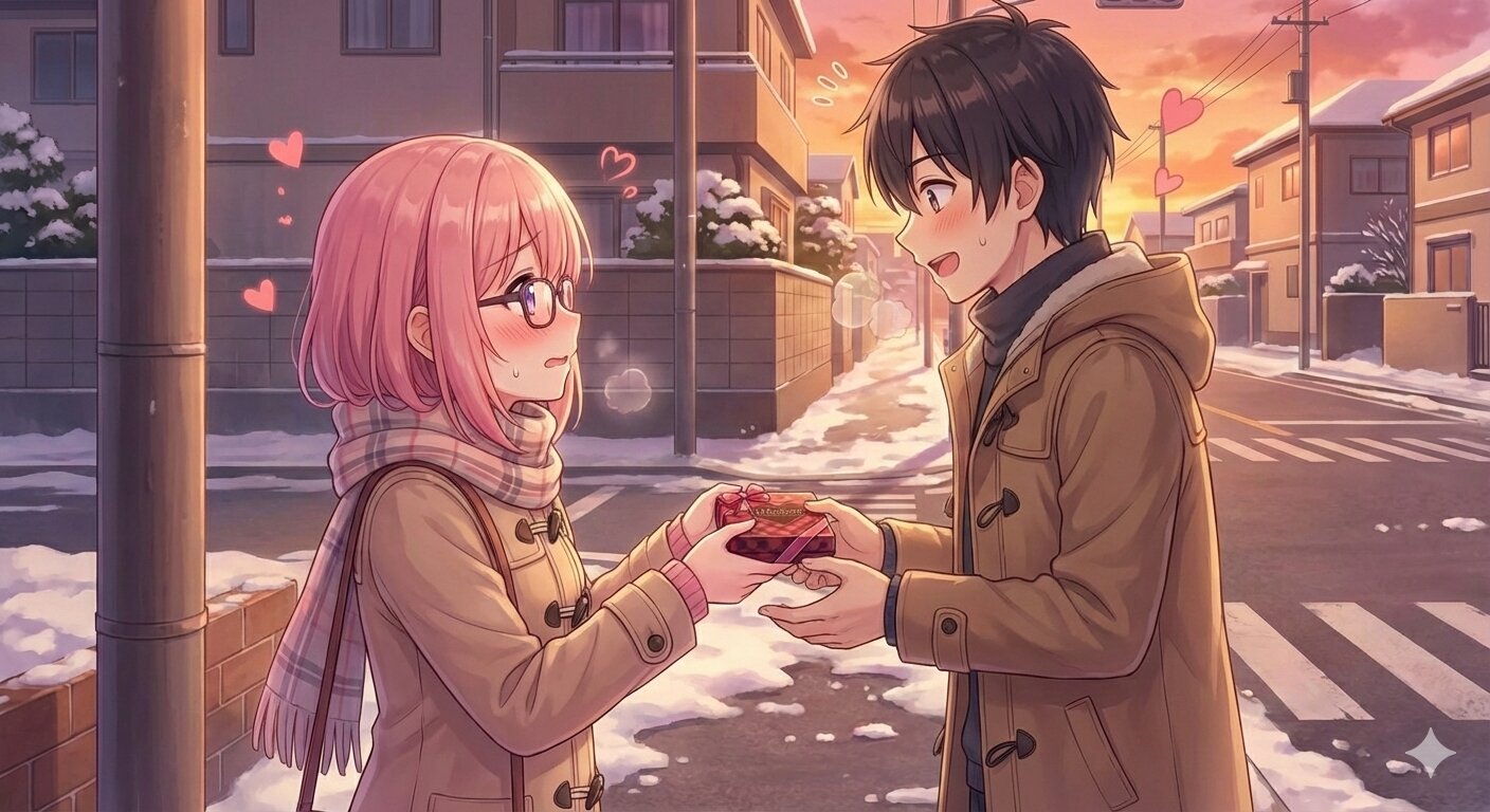 ついに彼に…!「私の気持ち貰ってください!」 らて/ラピスラズリ 2026/2/14使用したAI Gemini/Nano Banana 年齢制限 全年齢 いいね6 シェア #AIきらめきバレンタイン プロンプト なし 3件のコメント 伊集みかん 2026/02/14 13:11 よかったー!渡せましたね!!でもこれがゴールじゃない、ここからが始まり。とりあえず2人とも雪道転ばないようにしっかり手をつないで帰って下さい。台詞が聞こえてきそうな1枚、ちょっとうるっときてしまいました。 らて/ラピスラズリ 2026/02/14 14:25 コメントありがとうございます😊そうですね😊ここからがスタートです❤ 藍野まゆら 2026/02/14 11:07 雪の中、勇気を出して想いを伝えた彼女の表情にドキドキしちゃいました🥺💕温かな光に包まれた二人の姿、最高のバレンタイン「きらめき」ですっ(`・ω・´)ゞ🍫✨ らて/ラピスラズリ 2026/02/14 14:26 コメントありがとうございます😊雪の中だけど、ドキドキでホカホカでしょうね😍 夏樹 2026/02/14 05:55 完結編来たー‼‼‼‼ ありがとうございます。この娘さんの恋の行方すご~く!気になっていたんです。チョコ受け取ってもらえてよかったね!おめでとう! らて/ラピスラズリ 2026/02/14 14:26 コメントありがとうございます😊まだチョコっと続きます\(//∇//)\ 送信 らて/ラピスラズリ 2024年3月より活動開始 320投稿38フォロー39フォロワー AIイラストで「今日は何の日」をSNSに 細々と投稿しております🙇♀️ AIイラストはまだまだ初心者です🔰 どうぞよろしくお願いします😊 フォローする 他の作品 全てを見る にゃんことロリポップ グラウンドにて 彼とチョコレートを食べて、一緒に帰りましたとさ❤ さあ彼を待つよ!ドキドキする💓 ハイ!お待ち!特大ハンバーガーとポテトです! チョコレートができたよ🍫もうひとつ恋の魔法かけちゃおう♡ ニットでお出かけ チョコレートを作るよ🍫アブダカタブラ〜 オシャレしてお出かけ バレンタインのチョコレート、どんなのを作ろうかな? コタツ 休み時間 金曜日のチアガールꉂꉂ📣 授業中 満員電車で登校中 パンケーキ𓌉🥞𓇋 起床🌞まだ眠いよ😴 汽車に乗って小旅行 もっと見る