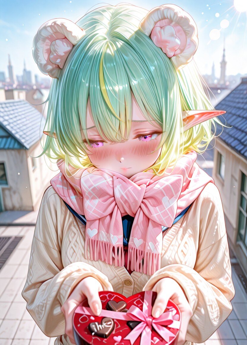 9枚)ドキドキバレンタイン② あいのすけ 2026/2/14使用したAI Stable Diffusion XL 年齢制限 全年齢 いいね6 シェア #AIきらめきバレンタイン #リボンマフラー #学生服 #女の子 #エルフ #ケモ耳 #ケモ耳エルフ チョコ 貰ってくれますか? プロンプト なし 5件のコメント あいのすけ 2026/02/15 12:04 呪文的にはチョコを渡すだけのもあったので片手か両手かはランダム、ツンデレバージョンも数枚混じっています 藍野まゆら 2026/02/15 02:38 金髪のコントラストがとっても綺麗で、まさに「きらめき」溢れる一枚ですねっ✨彼女が勇気を出して届けてくれたそのチョコ、全力で受け取らせてくださいっ(`・ω・´)ゞ🍫💕 伊集みかん 2026/02/14 17:16 個人的に、片手で渡すのちょっと好みです。「はい、べ、べつに本命とかじゃないんだからねっ」って言ってるみたいで。 もっと見る 送信 あいのすけ 2025年9月より活動開始 169投稿20フォロー21フォロワー ケモ耳とエルフが好きな一般人です。 気の向くままに作品を作り投稿してみようと思います。 フォローする 他の作品 全てを見る 10枚)ドキドキバレンタイン① 6枚)放課後プリースト in 墓地 ① 8枚)ビーチで撮影 10枚)剣士さん 魔法剣 2枚)松明とケモ耳エルフさん 12枚)花畑とケモ耳さん 7枚)花束と天使さん 4枚)花束とケモ耳エルフさん 6枚)カップケーキとケモ耳エルフさん 7枚)チョコロールとケモ耳エルフさん 9枚)ハートアピール 6枚)イチゴと妖精さん 7枚)トレーディング:ラミア 3枚)コタツで釣り 2枚)コタツで釣り 9枚)犬と遊ぶ 3枚)水辺と柴犬さん もっと見る