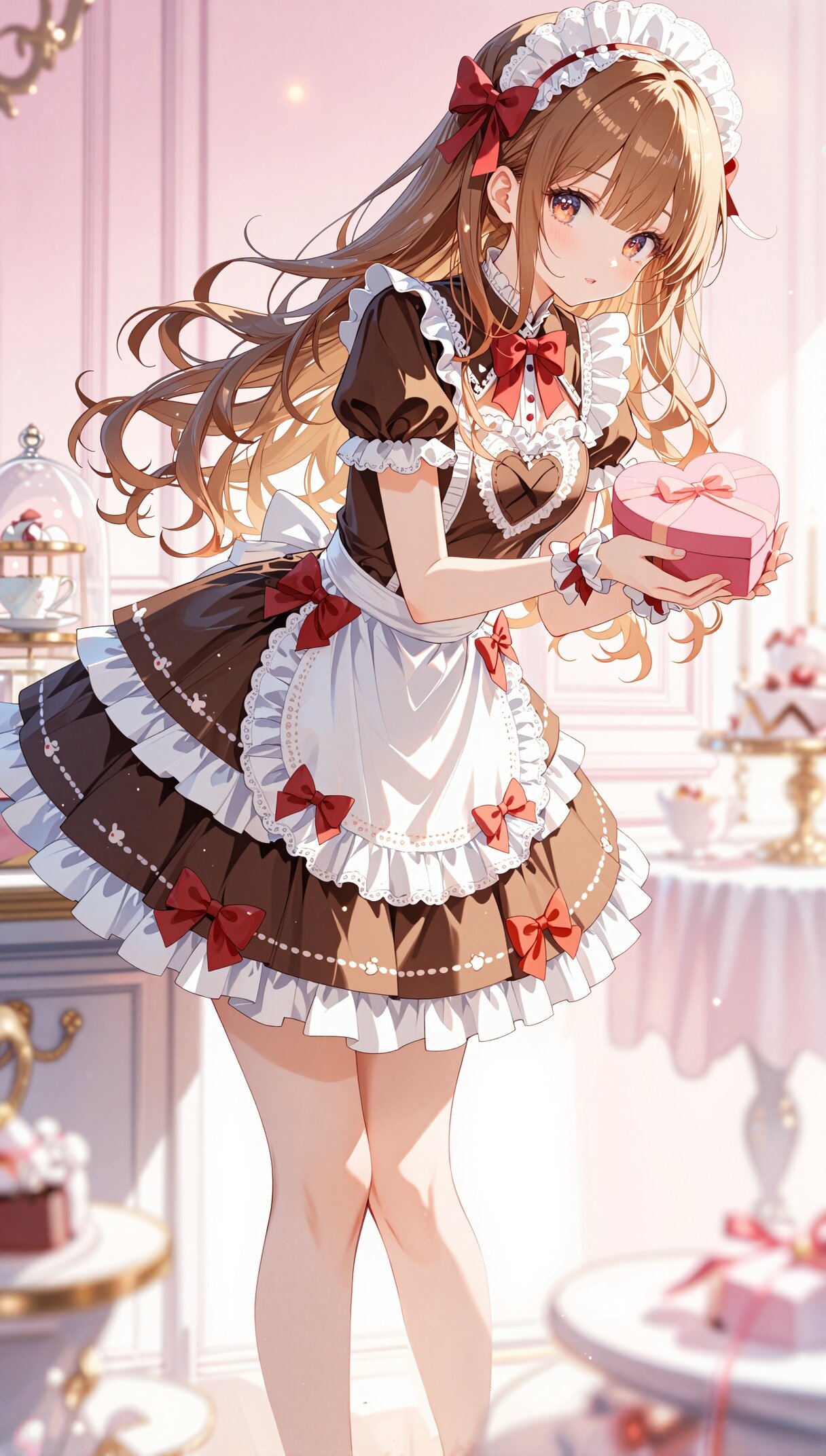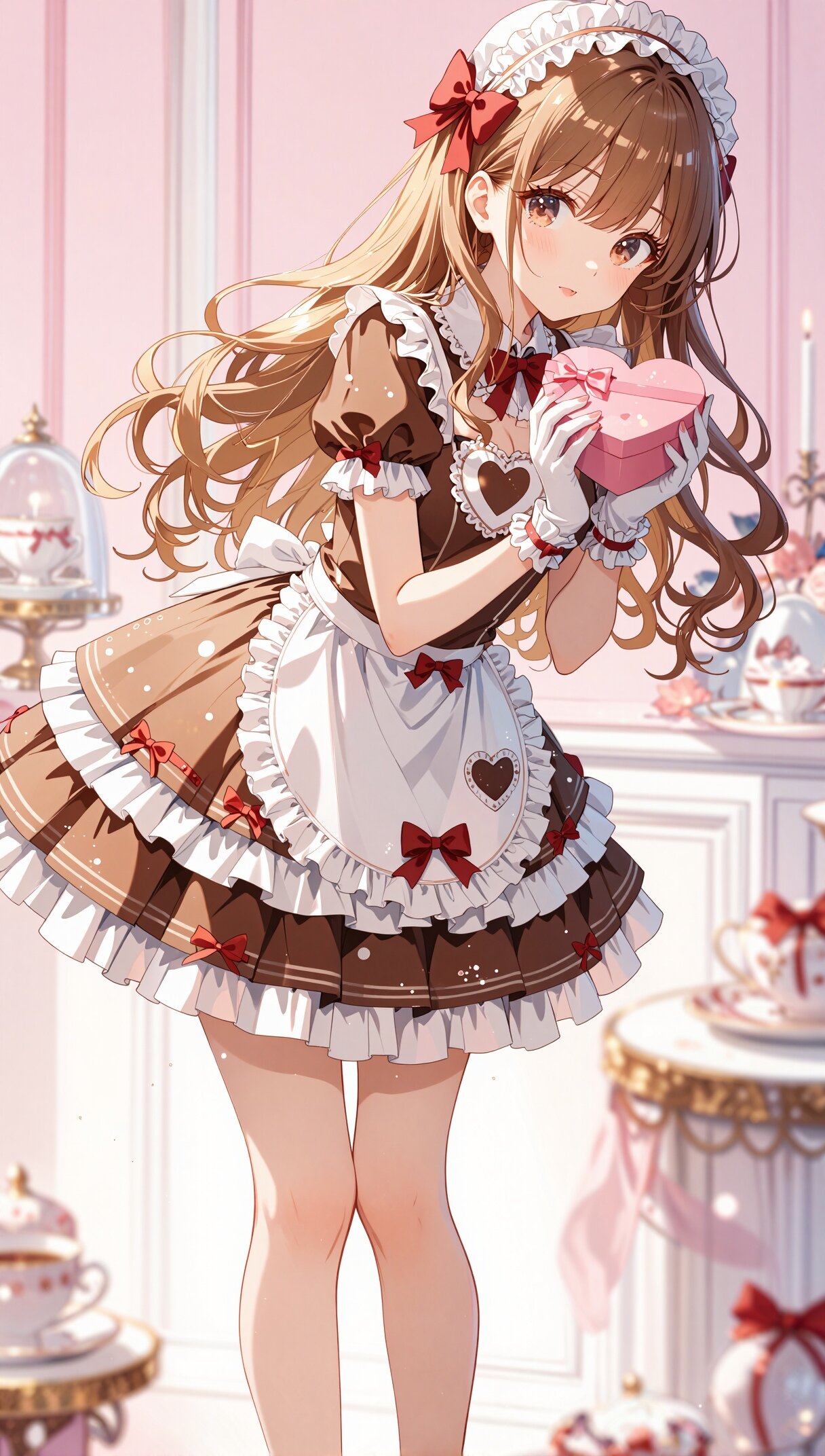 チョコ色のドレスに赤いリボンが映えていて、まさに甘いバレンタインの「きらめき」そのものですねっ🪄✨