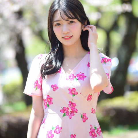 商店街で清楚おしゃれ撮影