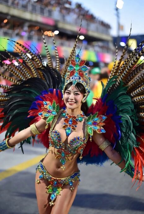 2月14日はブラジルでリオのカーニバルが開催されたそうで。シンプルな背景情報でGrok imagineにて静止画を生成した。