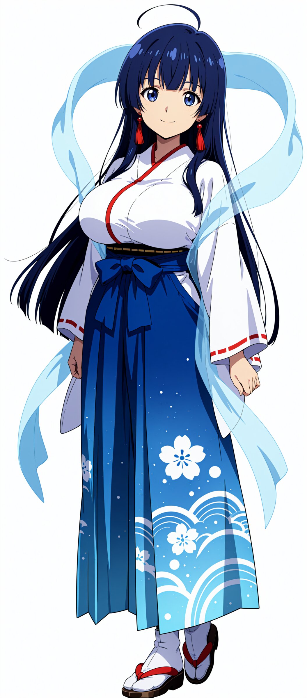 <lora:MeMax6-noob-vpred:1>,memaxl6_a,memaxl6_b,memaxl6_c,memaxl6_d,memaxl6_e, (10's anime style:1.2), (red halo:1.1, sun disk halo ), Full HD,32K, 1girl, solo, full body, standing, (goddess:1.2), (teenage :1.3), (large breast:2.0), (tareme:1.2), beautiful hair, shiny hair, straight hair:2.0, (light blue hair:1.2), crossed bangs, (hime cut, very long hair:1.1), ahoge, ((gradient eyes:2.0, blue eyes, orange eyes, star-shaped pupils:2.0)), (empty eyes:2.0) (Celestial Maiden:1.8), (japanese clothes, red-white miko:1.3, clothing cutout:2.0, long sleeves, red tassel earrings, pearl, no headwear, blue long hakama skirt:2.5, seigaiha, tabi), ((light-blue hagoromo:2.0)), expressionless, closed mouth, looking at viewer, (simple background, white background, ), masterpiece, best quality, super fine illustration, very aesthetic, newest, hyper detailed, intricate, beautiful, aesthetic, highly decorative, HDR, yume kawaii, ,anime screencap,anime,no gradients, 2D flat design, bold outlines,