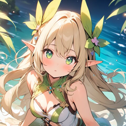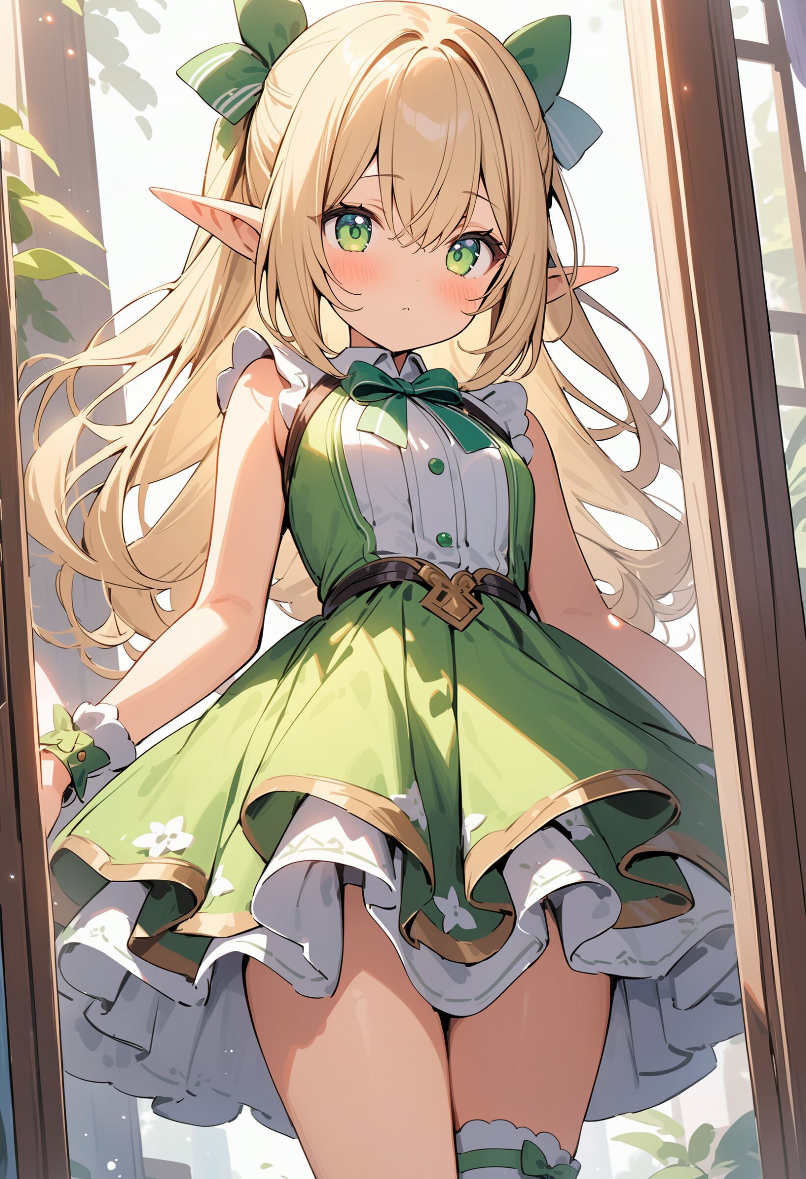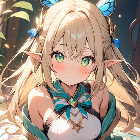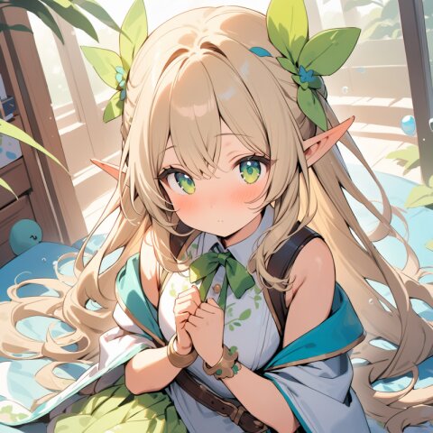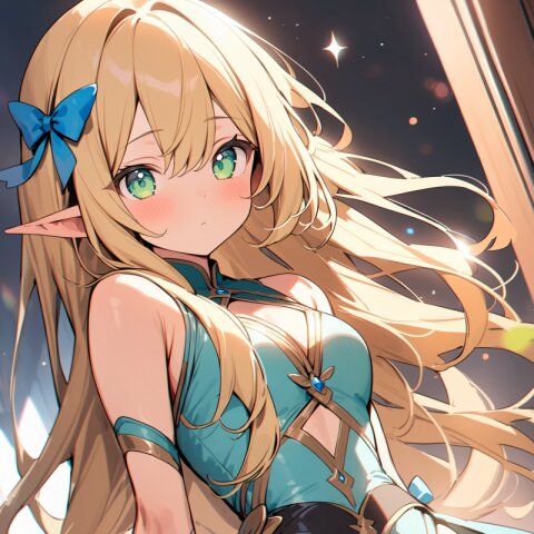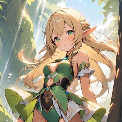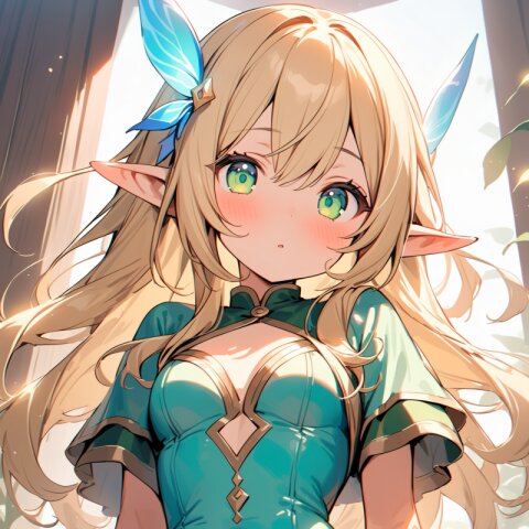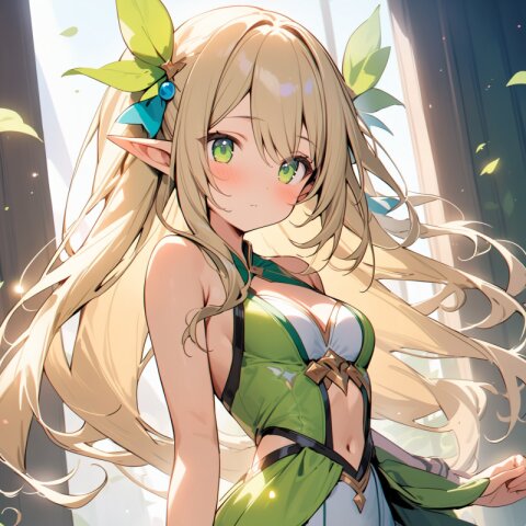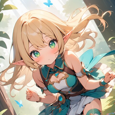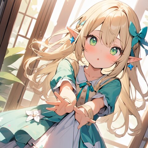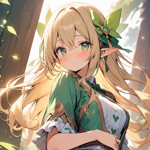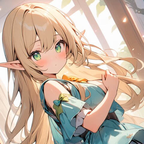 ((masterpiece)), ((best quality)), ((kawaii)), cute, (lovely), ((extremely detailed)), (beautiful), dynamic angle, a cute girl, 1girl, solo, ((elf)),beautiful blond hair, beautiful green eyes, ((beautiful eyes)), long hair, fantasy clothes,