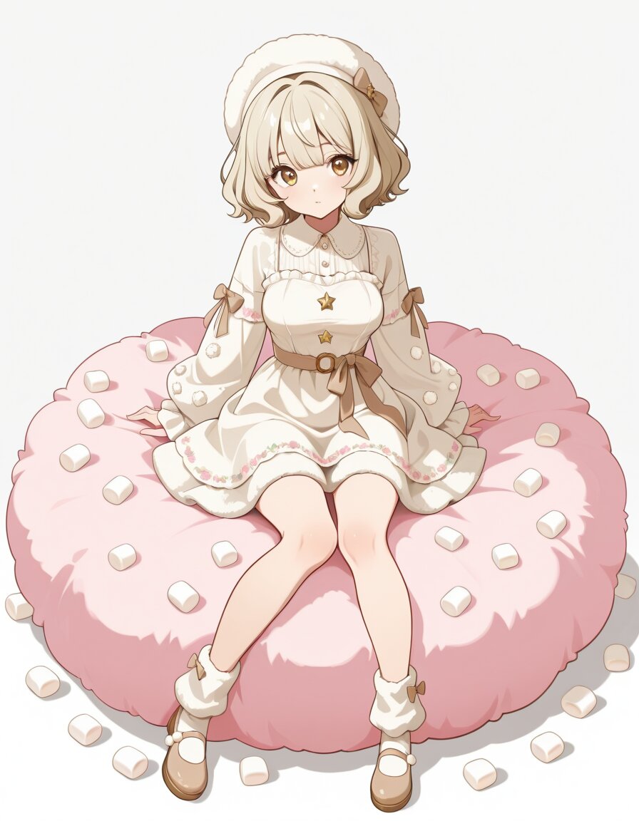「ん~!あり合わせの衣装で即席で作ったけど、コレでマシュマロっぽく見えない?」