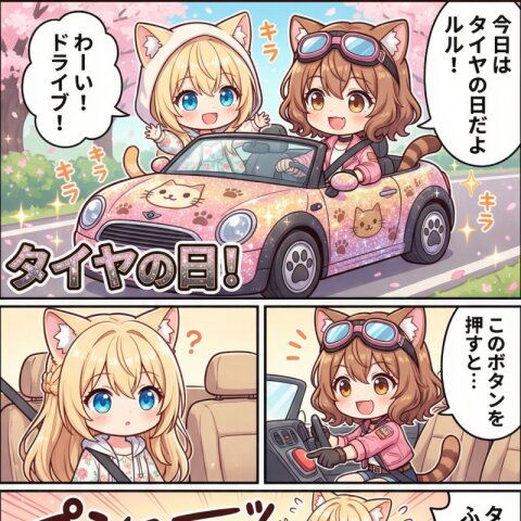 「歌舞伎」をテーマに、金髪猫耳娘「ルル」が登場するユニークな短編カラー漫画を作って。 猫たちの歌舞伎を楽しむ。 添付画像通りのキャラクターデザイン。 シチュエーションに沿った衣装。 セリフやオノマトペはすべて日本語。 右から左へ読むことを前提としたセリフ、それに合わせたキャラ配置、コマ配置。 内容に合ったタイトルをつける。 タイトルは内容に沿ったデザインの飾り文字とする。 タイトルは1コマ目内の右下か左下に配置する。 アスペクト比9:16。