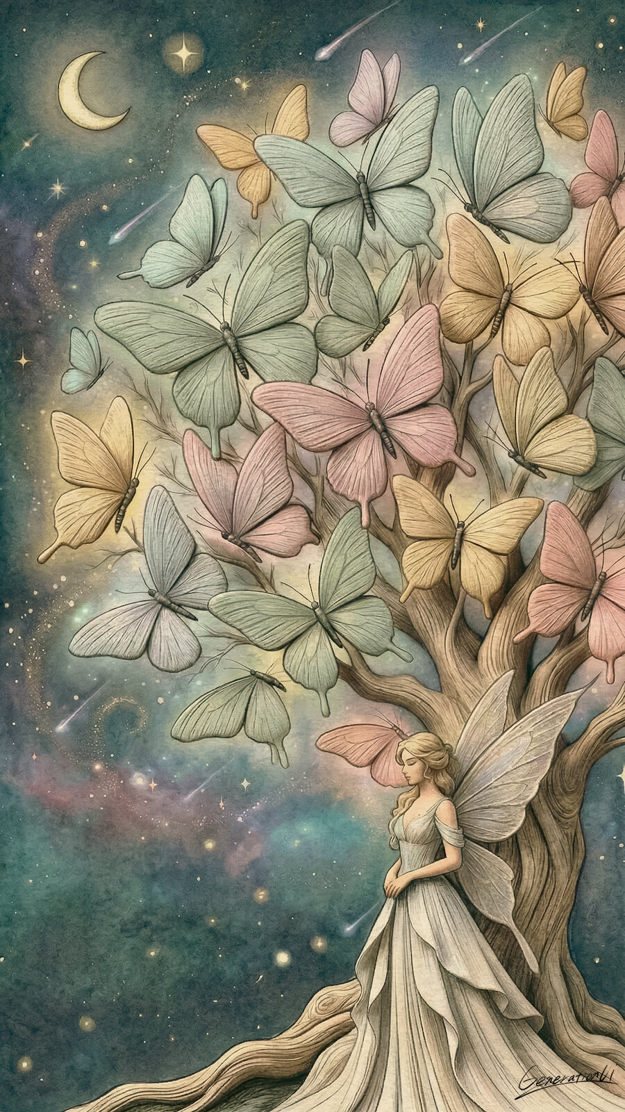 月と蝶が出会う夜/スマホ壁紙アーカイブ