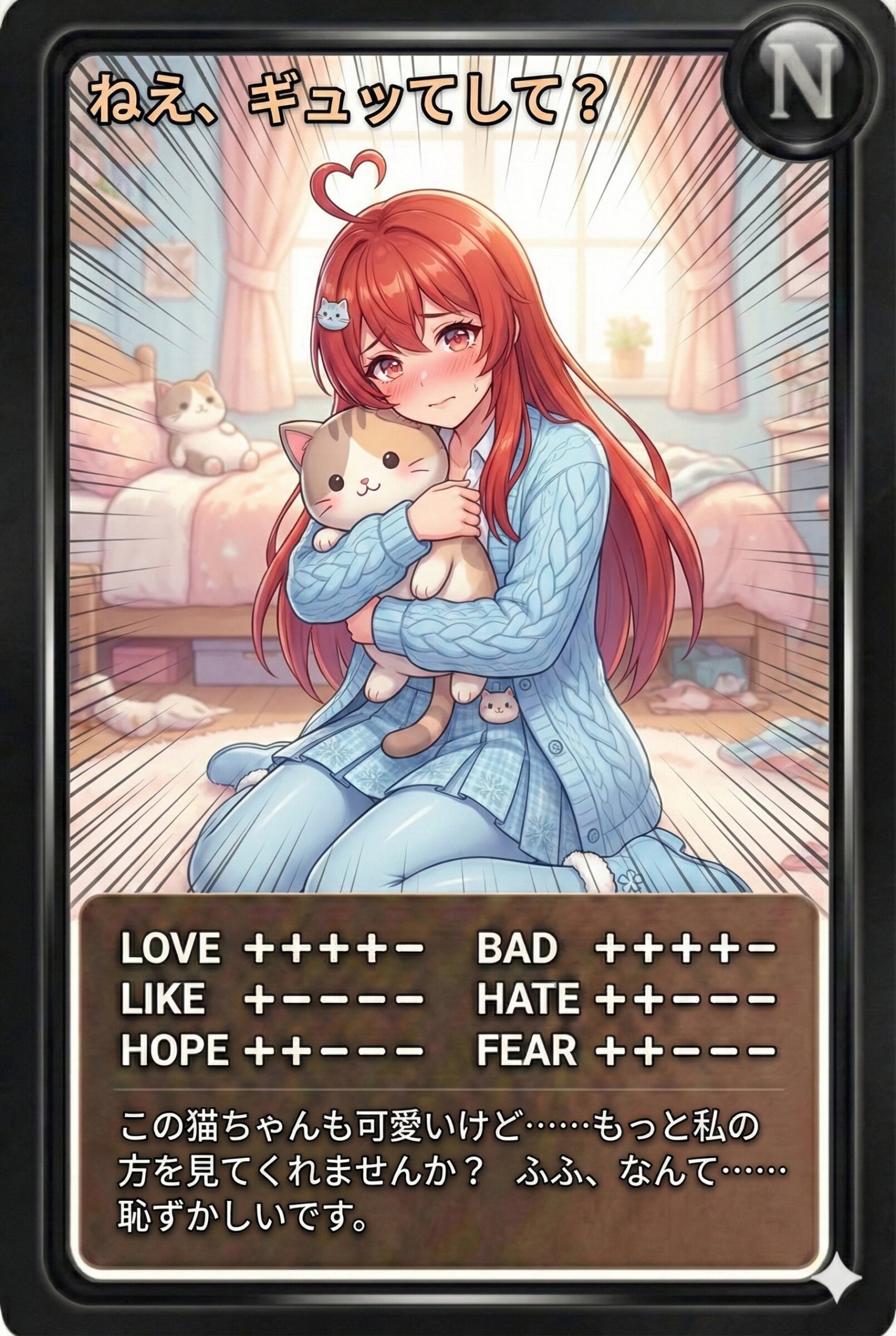 この猫ちゃんも可愛いけど……もっと私の方を見てくれませんか? ふふ、なんて……恥ずかしいです。