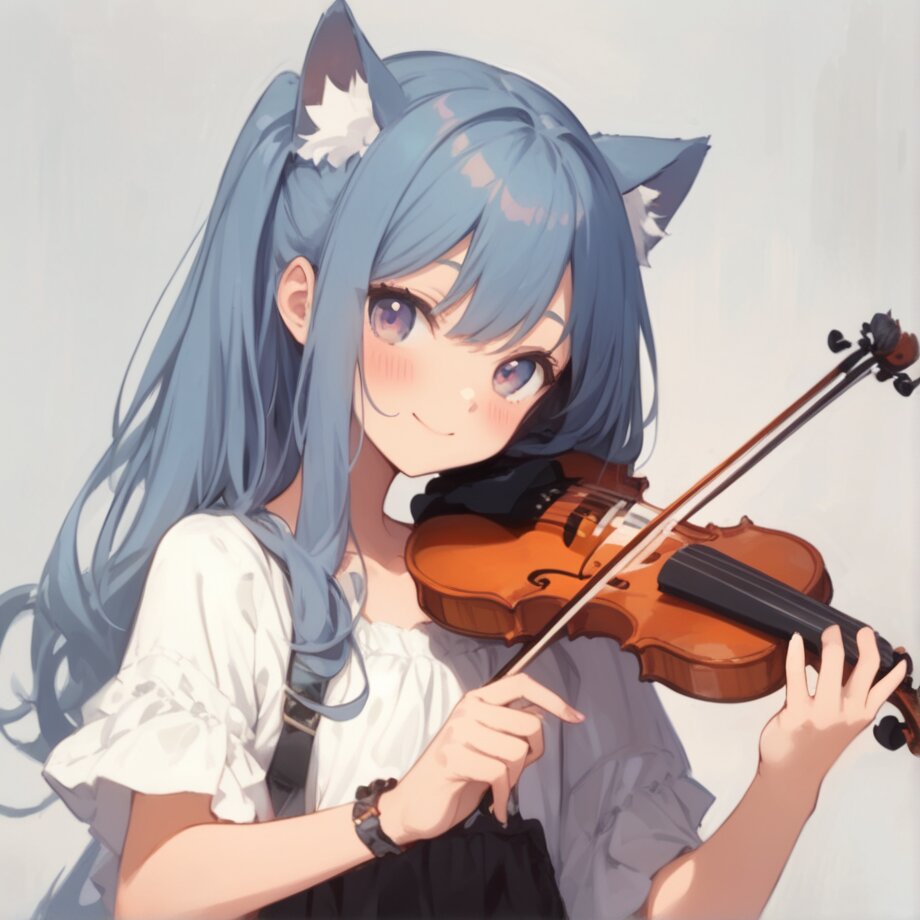 masterpiece, best quality, 1girl, Hiding one's mouth with violin, kawaii, cat, holding up a violin vertically, absolute territory, sportswear,