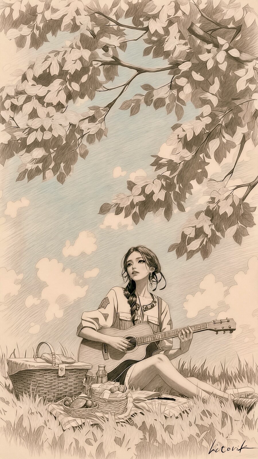 春空とアコースティックギター/スマホ壁紙アーカイブ
