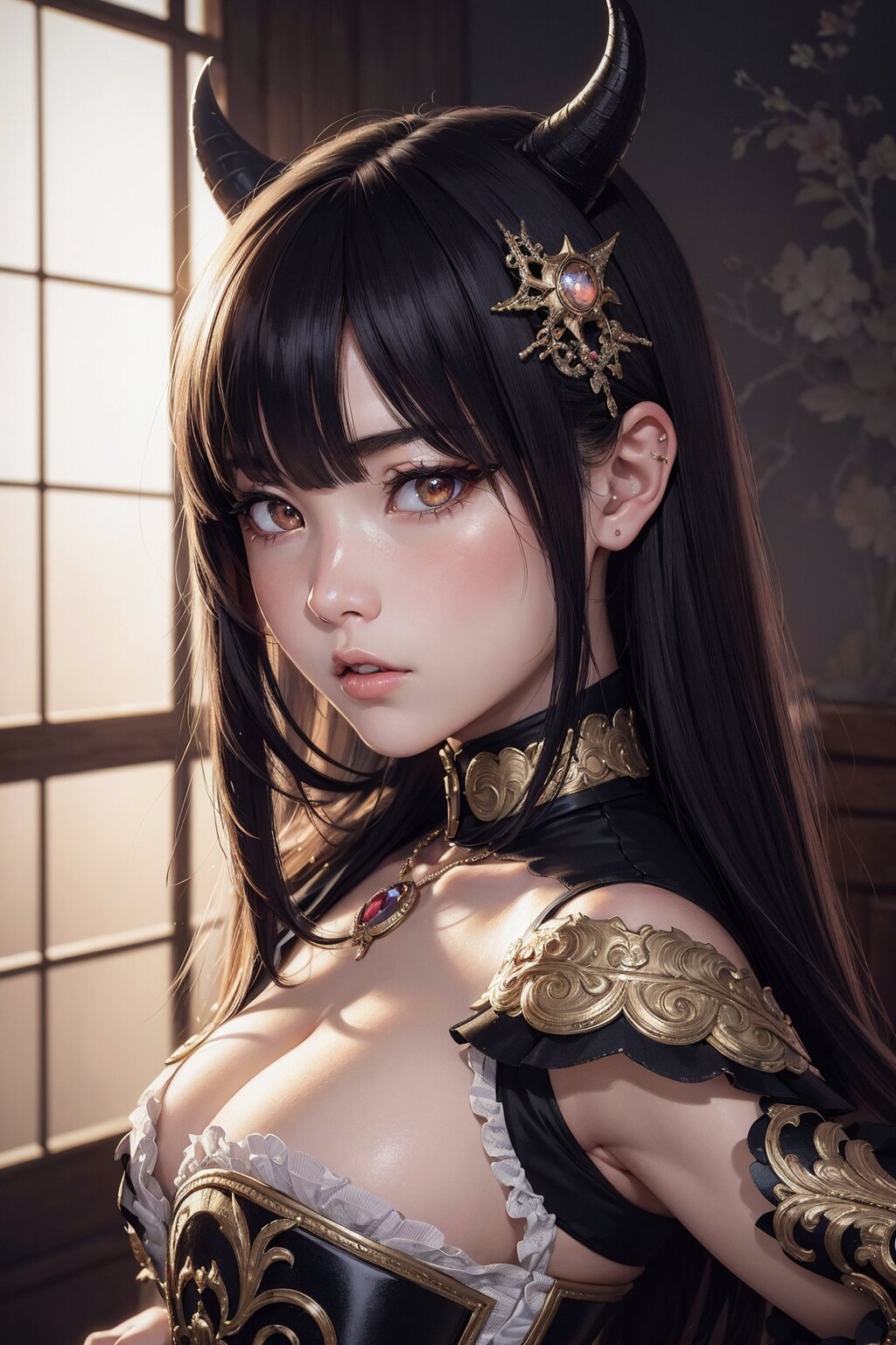 masterpiece, hyper detailed, 8K, hyper detailed illustration, Japanese woman, 23yo, (cute:1.1), (pretty:1.1), hyper detailed face, hyper detailed eye, beautiful eye, medium hair,(bangs:1.1), thin, tall,170cm tall, demon girl costume, kneehighs, hyper detailed, extremely detailed,
