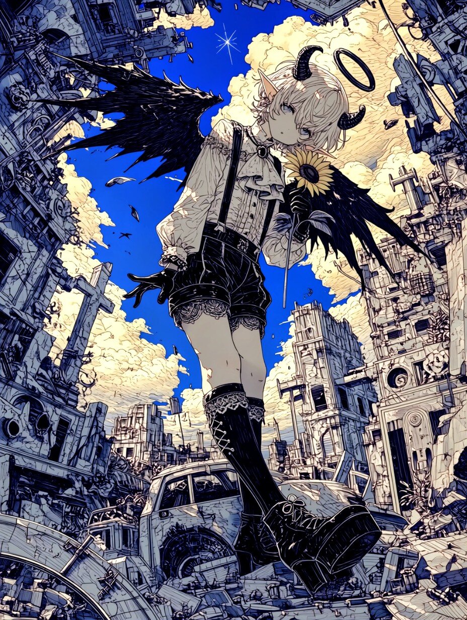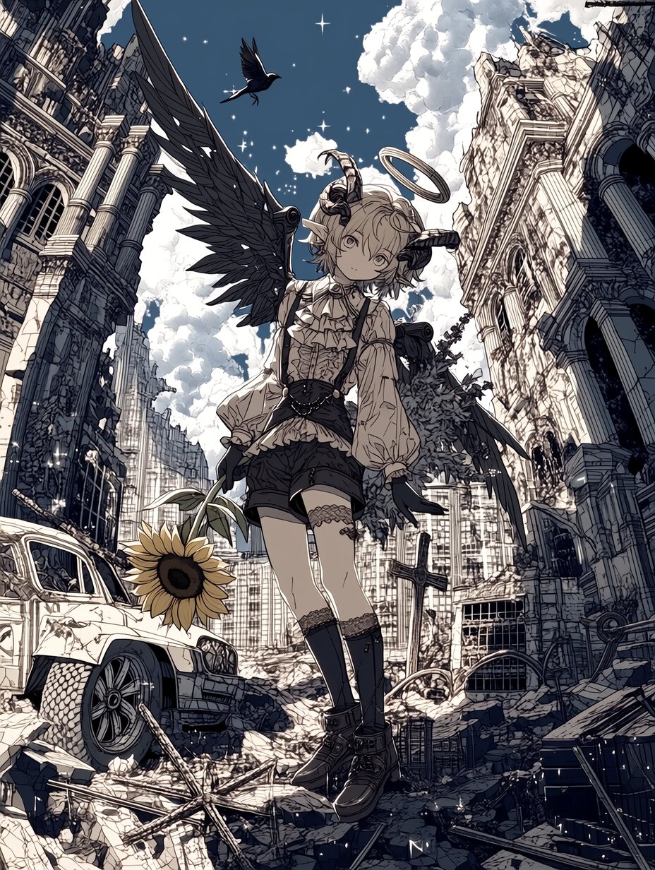 向日葵と堕天使 みおこんぼ 2026/2/28使用したAI niji・journey 年齢制限 全年齢 いいね7 シェア #堕天使 #向日葵 #廃墟 niji習作。 プロンプト なし コメント 送信 みおこんぼ 2023年8月より活動開始 44投稿15フォロー15フォロワー Xにて毎日AIイラストを投稿しています。 フォローする 他の作品 全てを見る 立体切り絵風 カラフルドット画風 時空転移装置 カラフルドット ひな祭り習作詰め ついにひな祭り♪ 窓辺 水中きのこ森 不穏 立体切り絵 水と光と天使 和風苺さん カラフルポップ2 痛ネイル カラフルポップ もうすぐ春 ティータイム マイバディ もっと見る