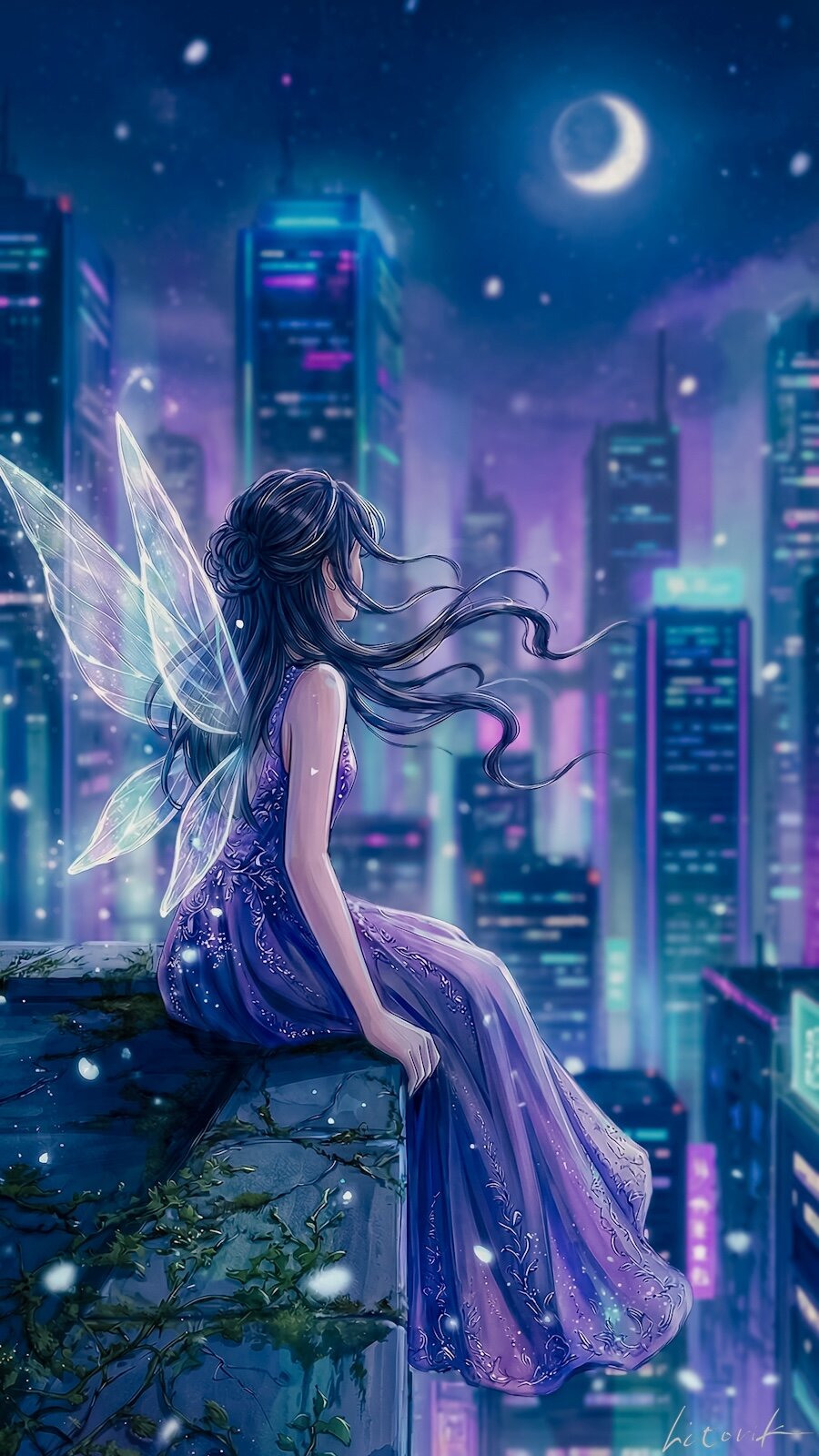 羽根に降り注ぐ三日月の光が、静かに満ちていく。