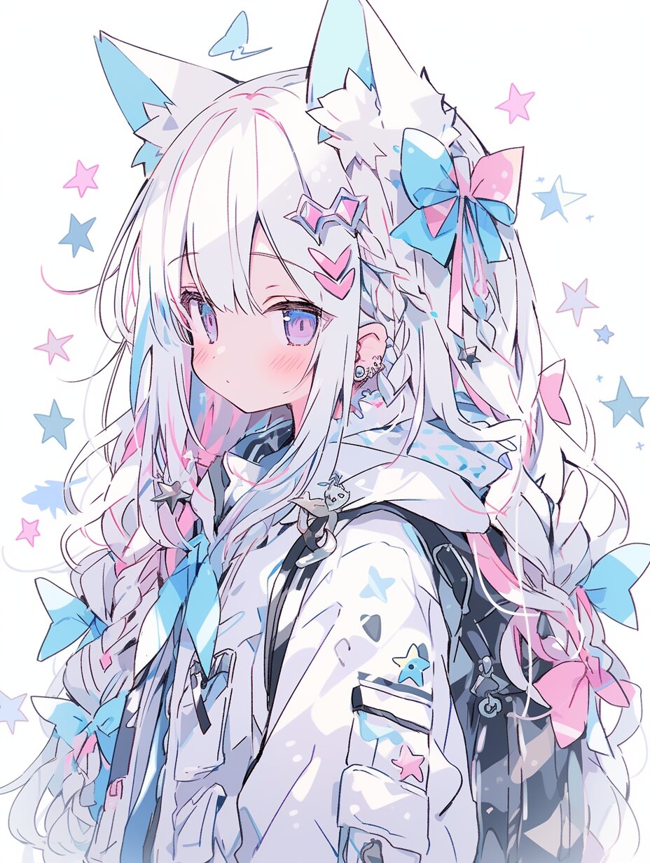 星空の下、蝶の翼に導かれて少女は旅立つ。白く長い髪にピンクの弓を飾り、紫の瞳に無限の夢を宿す彼女の日常は、ファンタジーの冒険そのもの。バックパックを背負い、未知の世界へ一歩踏み出す瞬間。蝶たちが舞い、星々が輝く中、彼女は何を見つけ、何を失うのか? 読み手の心を優しくかき立てる、甘く切ない物語の始まり。