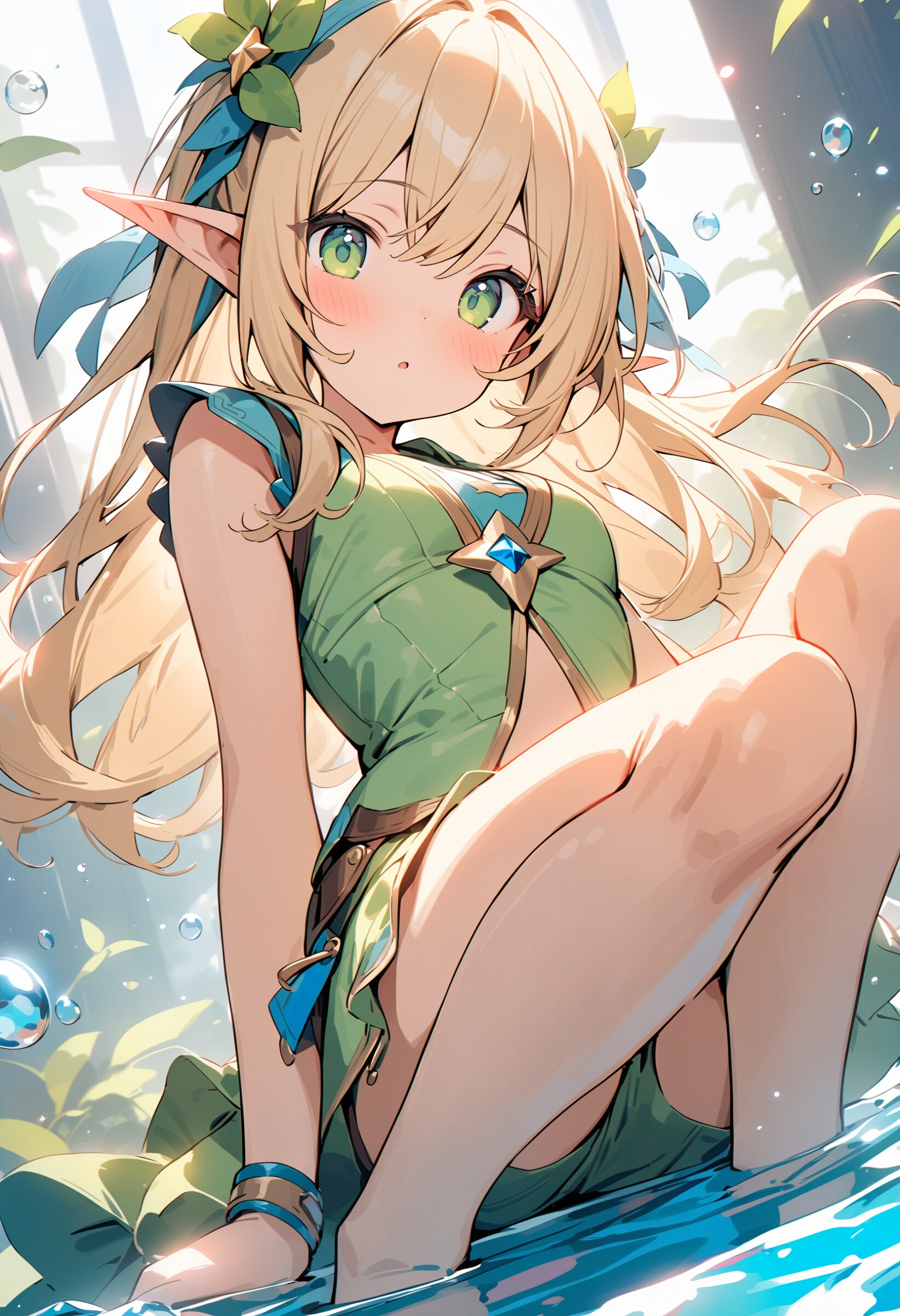 ((masterpiece)), ((best quality)), ((kawaii)), cute, (lovely), ((extremely detailed)), (beautiful), dynamic angle, a cute girl, 1girl, solo, ((elf)),beautiful blond hair, beautiful green eyes, ((beautiful eyes)), long hair, fantasy clothes,